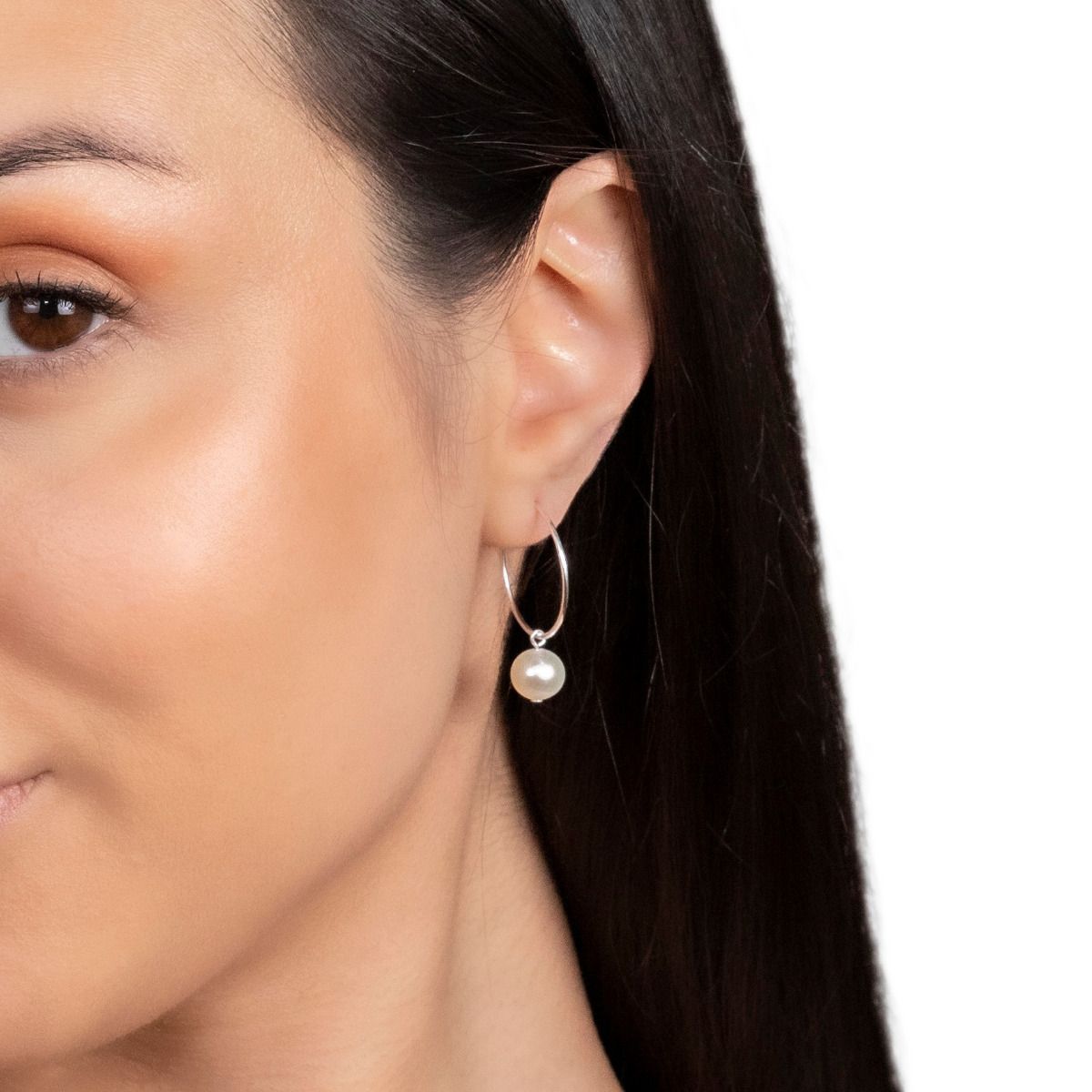 MCJ Earrings – Hoops with Pearl (Sterling Silver)