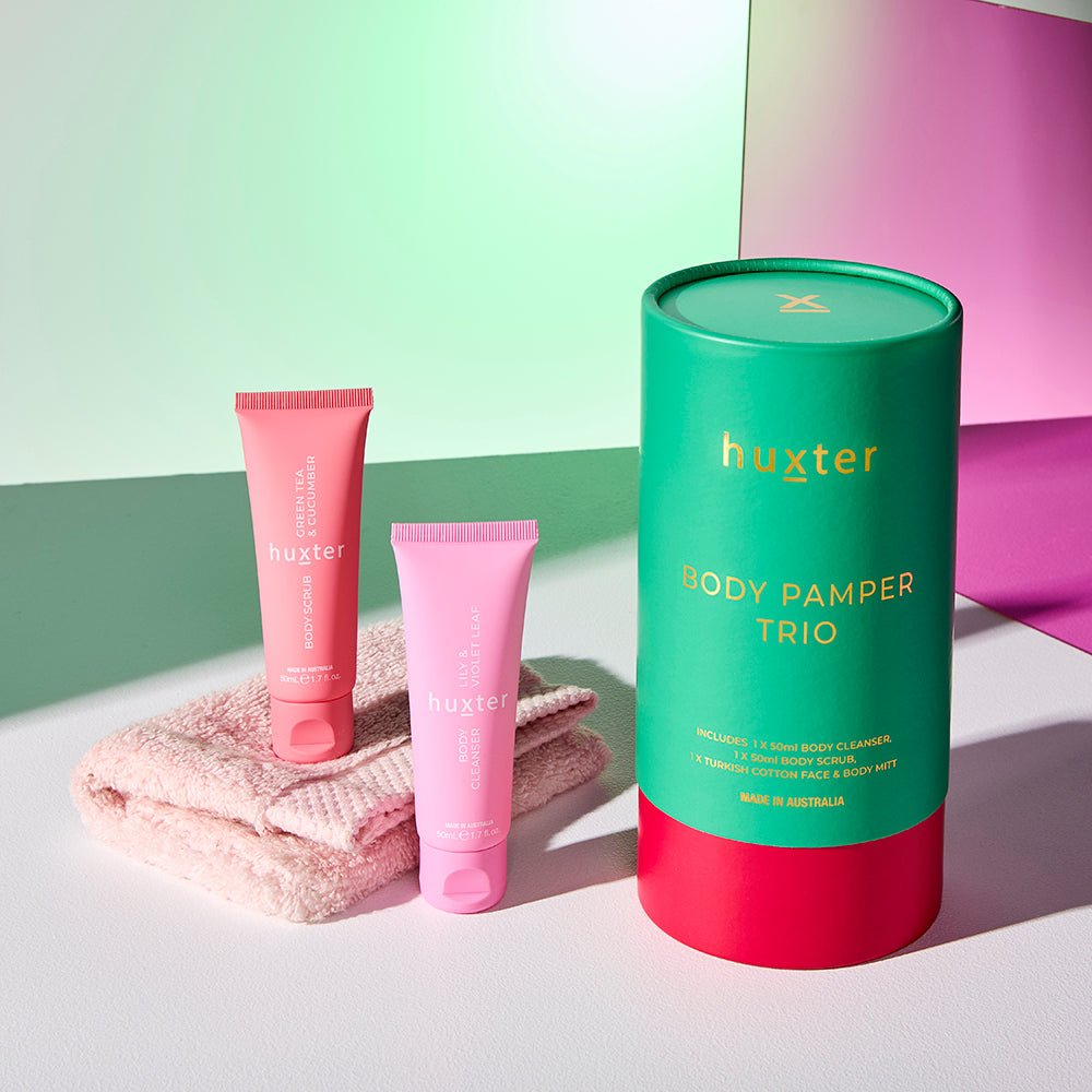 Treat yourself or someone special to a moment of indulgence with the Huxter Emerald Gift Trio – a beautifully curated body care set designed to refresh, revitalise, and restore. This trio includes a luxurious body cleanser, a gentle exfoliating scrub, and a soft Turkish cotton mitt, making it the ideal gift for birthdays, thank-yous, or well-deserved self-care rituals.