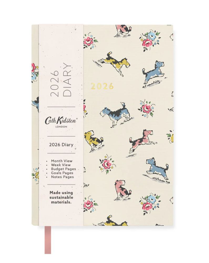 Keep your year beautifully organised with the Cath Kidston A6 2026 Diary – Billie & Friends. Featuring playful dog illustrations and floral accents, this clothbound diary is both practical and full of charm.
