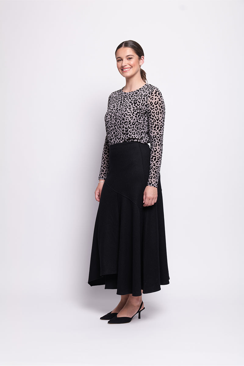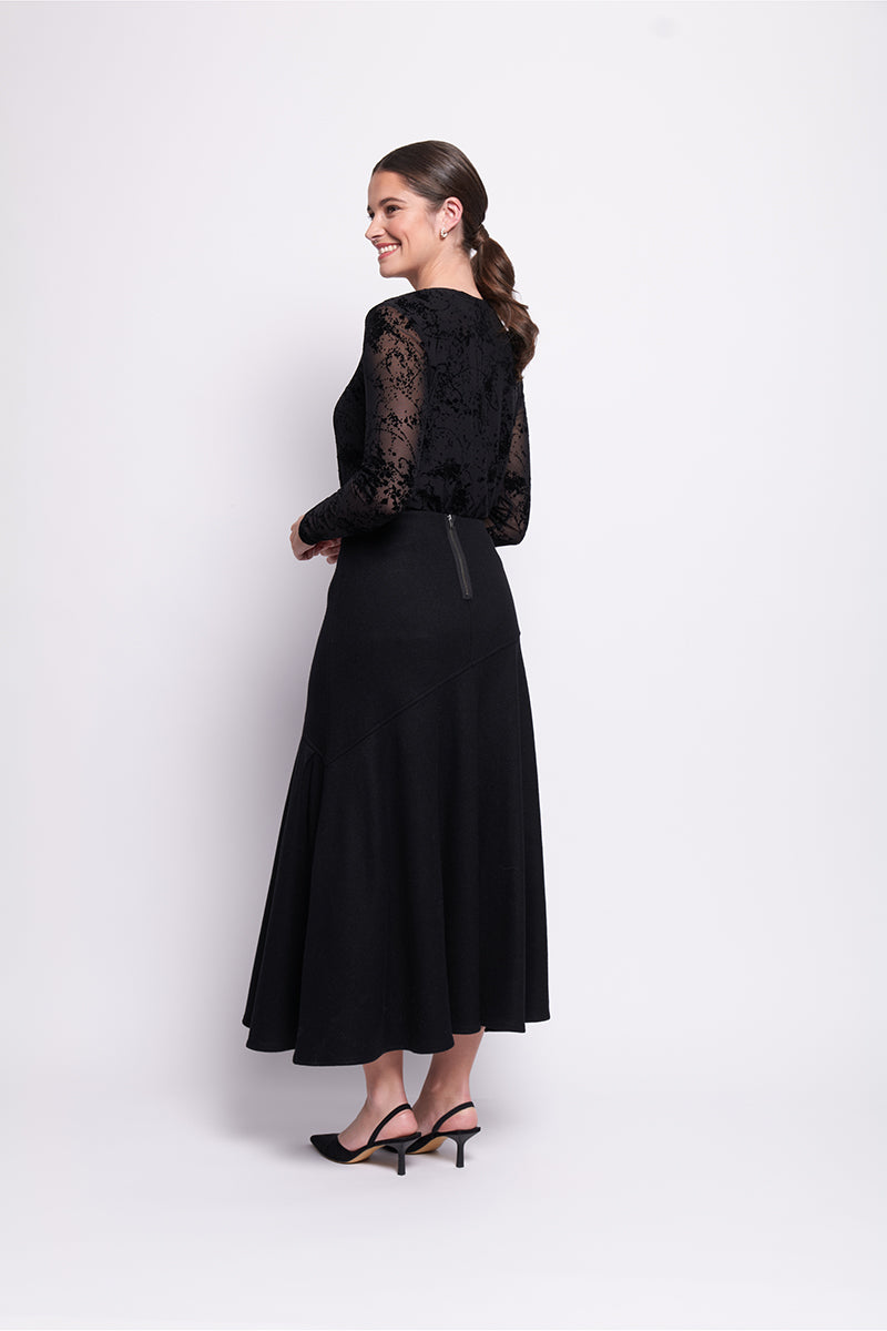 The Foil Skirt Wool the World in classic black is a timeless piece crafted from 100% wool, designed to bring elegance and sophistication to your wardrobe. Perfect for formal occasions or chic everyday wear, this skirt is as versatile as it is luxurious.