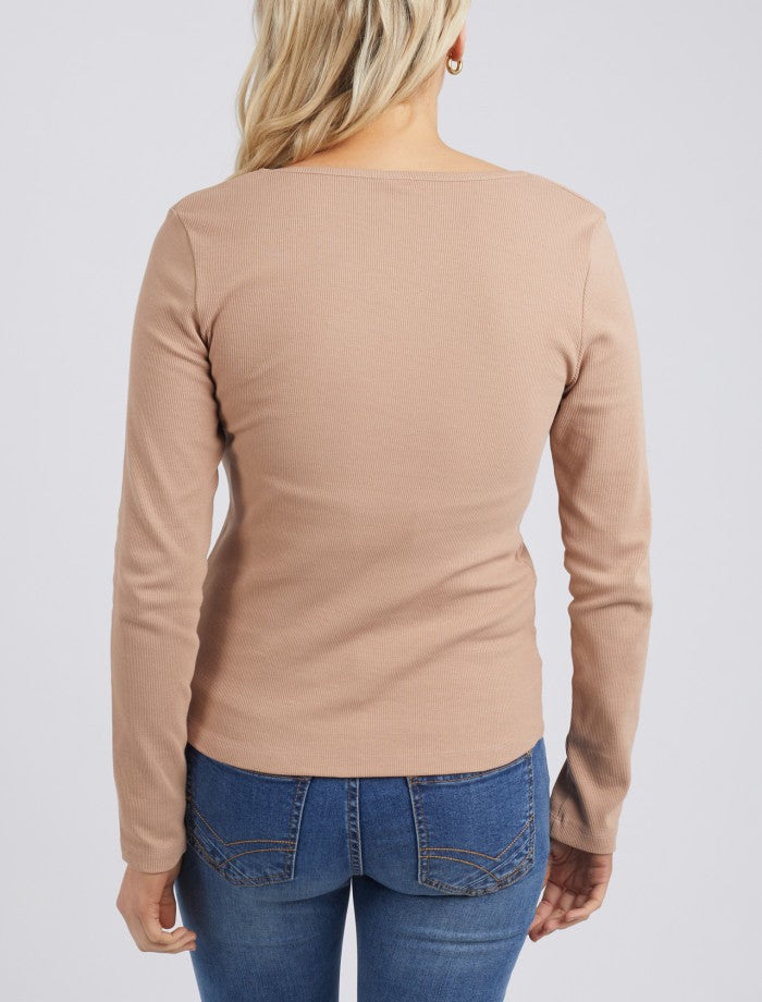 The Elm Tee Rib Square Neck L/S – Mocha combines everyday comfort with refined simplicity — the perfect long-sleeve essential for layering and easy style.