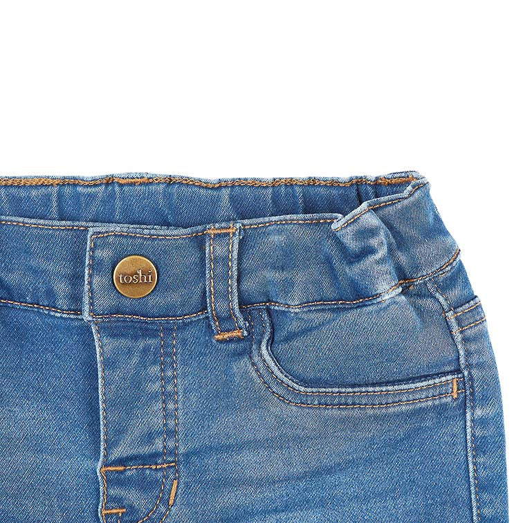 Pair the Toshi Baby Jean Storm with a Toshi Baby Shacket and Beanie Love for a stylish streetwear look. Dress them up with a soft knit sweater or keep it casual with a classic cotton tee. These jeans are a trans-seasonal staple, perfect for layering in cooler months or wearing solo on warmer days.