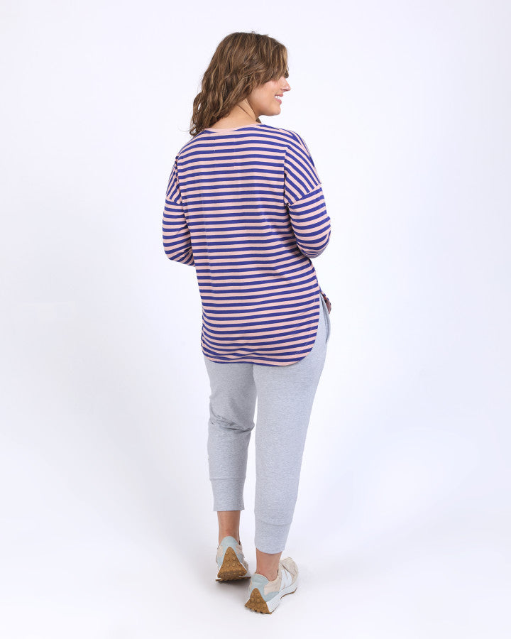 Pair the Elm Tee Lauren Long Sleeve - Deep Blue & Blush Stripe with denim joggers and sneakers for an effortlessly cool everyday look. For a casual chic outfit, tuck it into high-waisted pants and layer with a cropped jacket.
