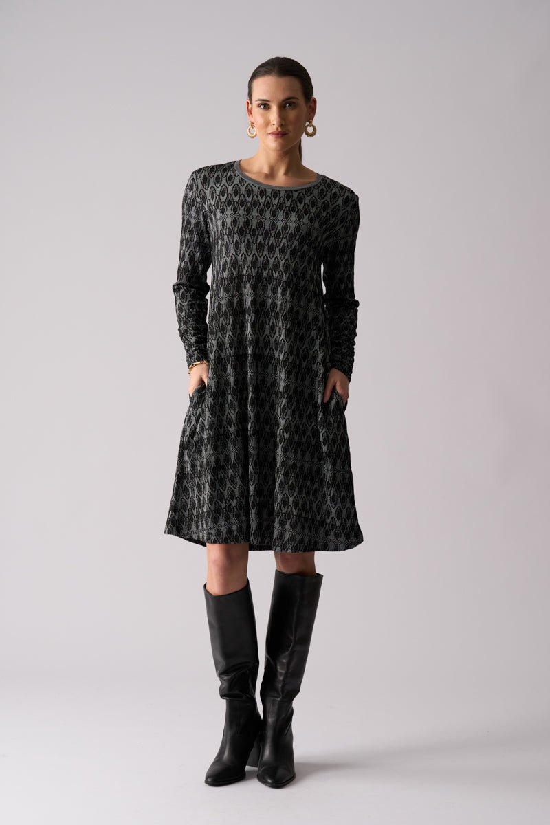 The FOIL Loominary Dress - Black is a beautifully simple, elevated winter essential designed for effortless everyday wear. Crafted from a soft 50% merino wool and 50% nylon blend, this dress combines the natural warmth and breathability of merino with added durability and shape retention. The subtle textured finish and clean silhouette make the FOIL Loominary Dress - Black a versatile piece available online from Pink Poppies Living Creatively.