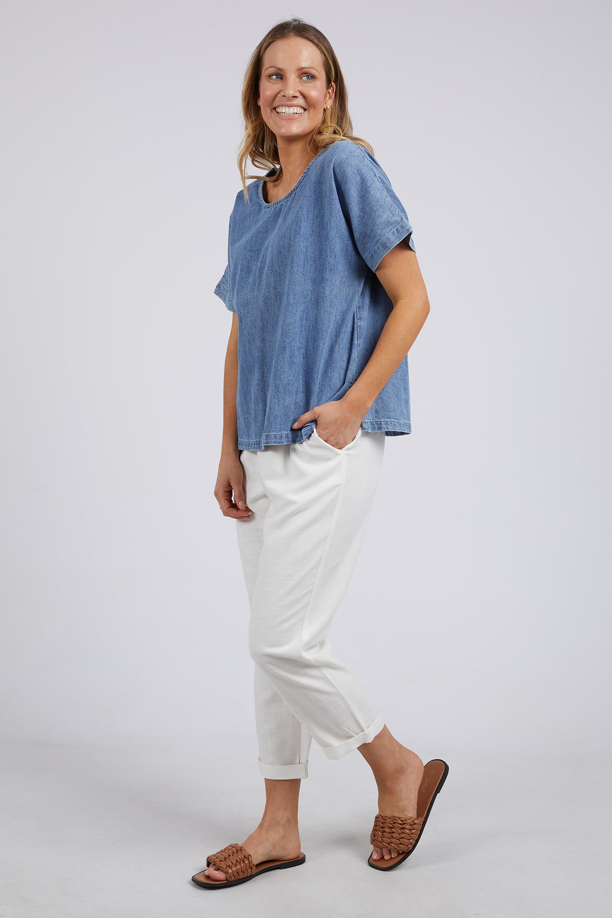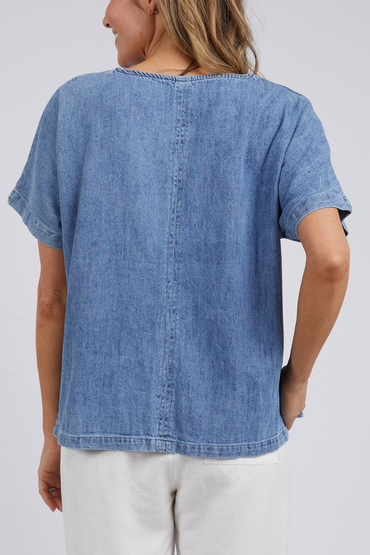 The Elm Tee SS Andy – Denim is a true wardrobe staple — soft, versatile, and effortlessly stylish, perfect for layering and easy everyday wear.