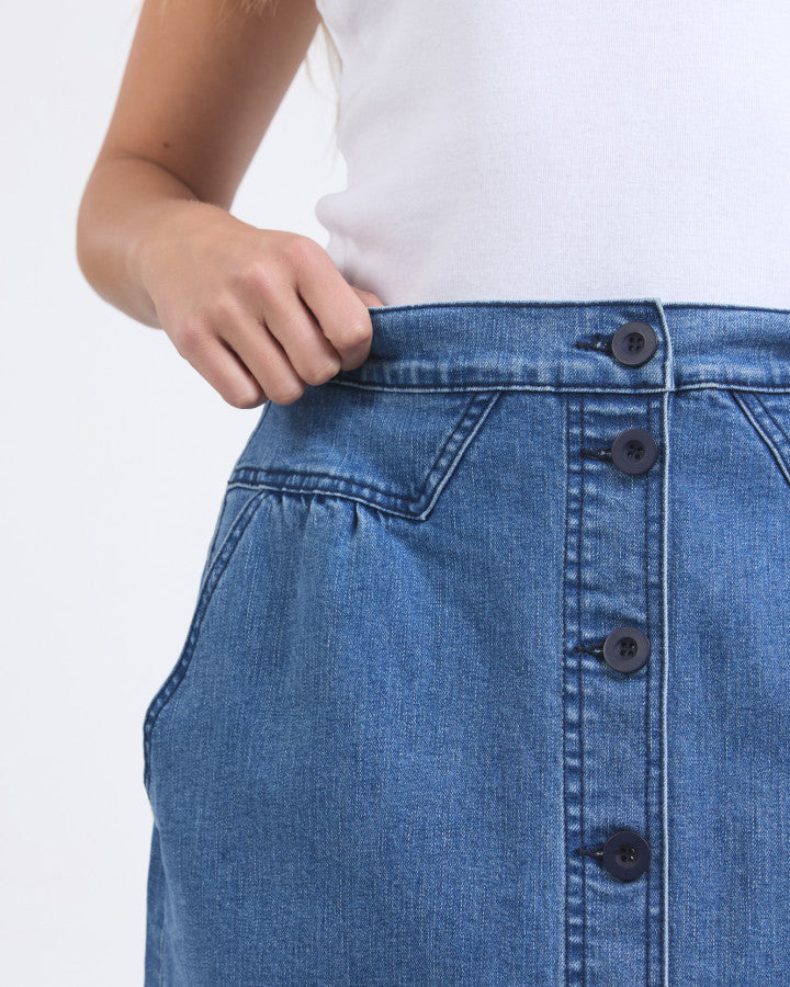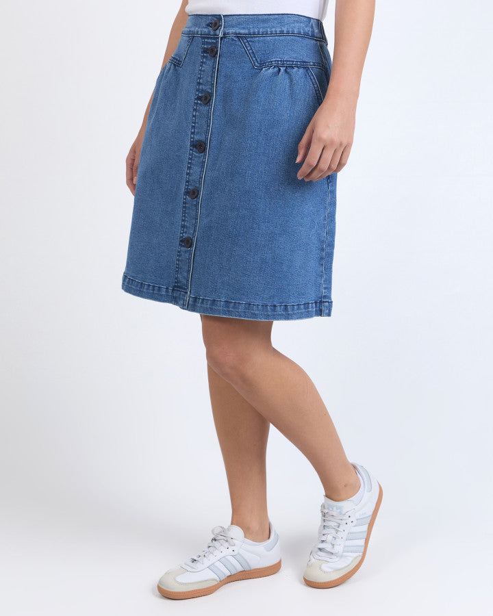The Foxwood Amanda Skirt is a stylish and versatile A-line denim skirt that blends retro charm with modern comfort. Designed for effortless wear, this must-have wardrobe staple offers both functionality and timeless appeal.