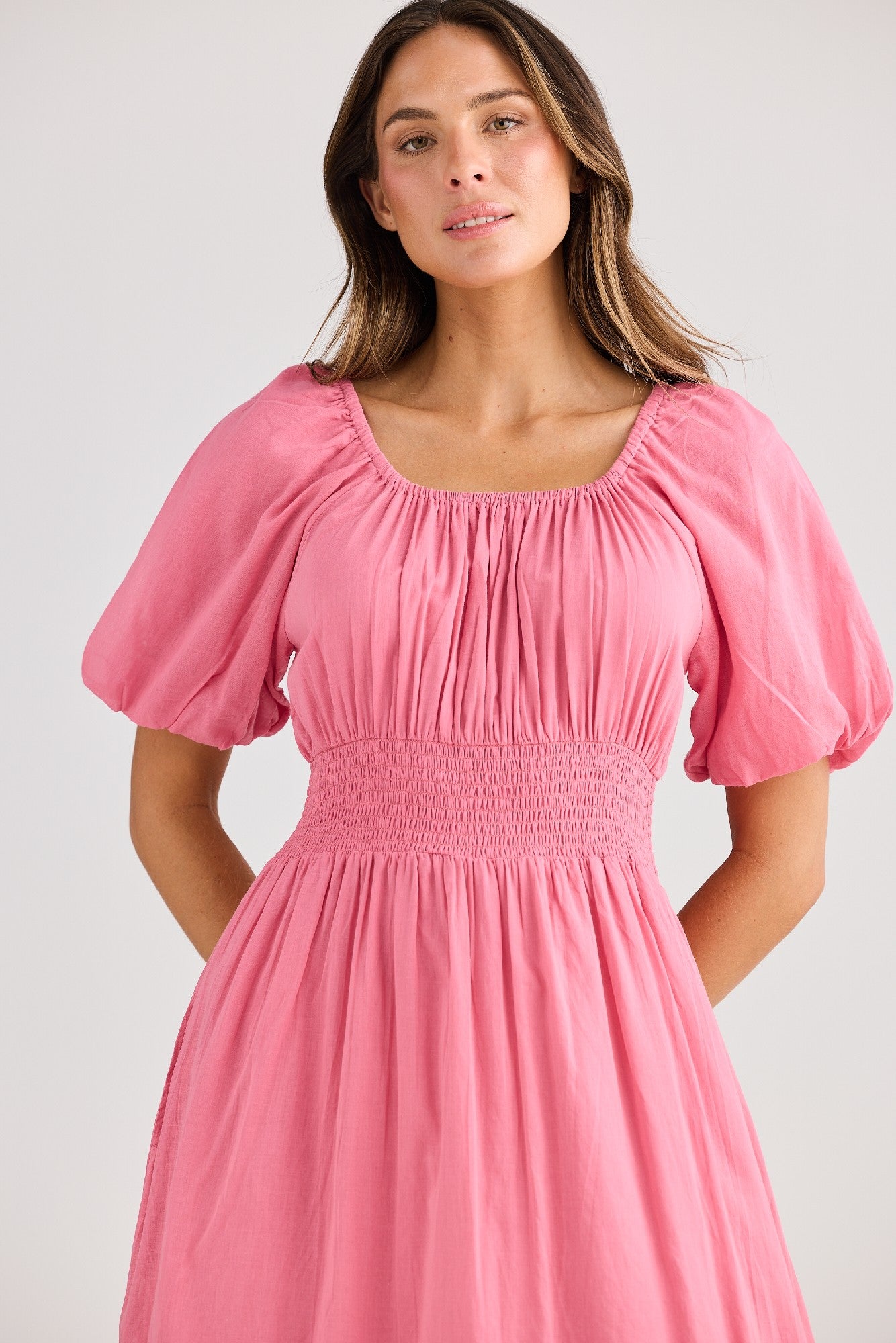 The Holiday Dress Scallop – Cosmo Pink blends comfort, colour, and effortless femininity, making it a must-have from the Holiday collection.