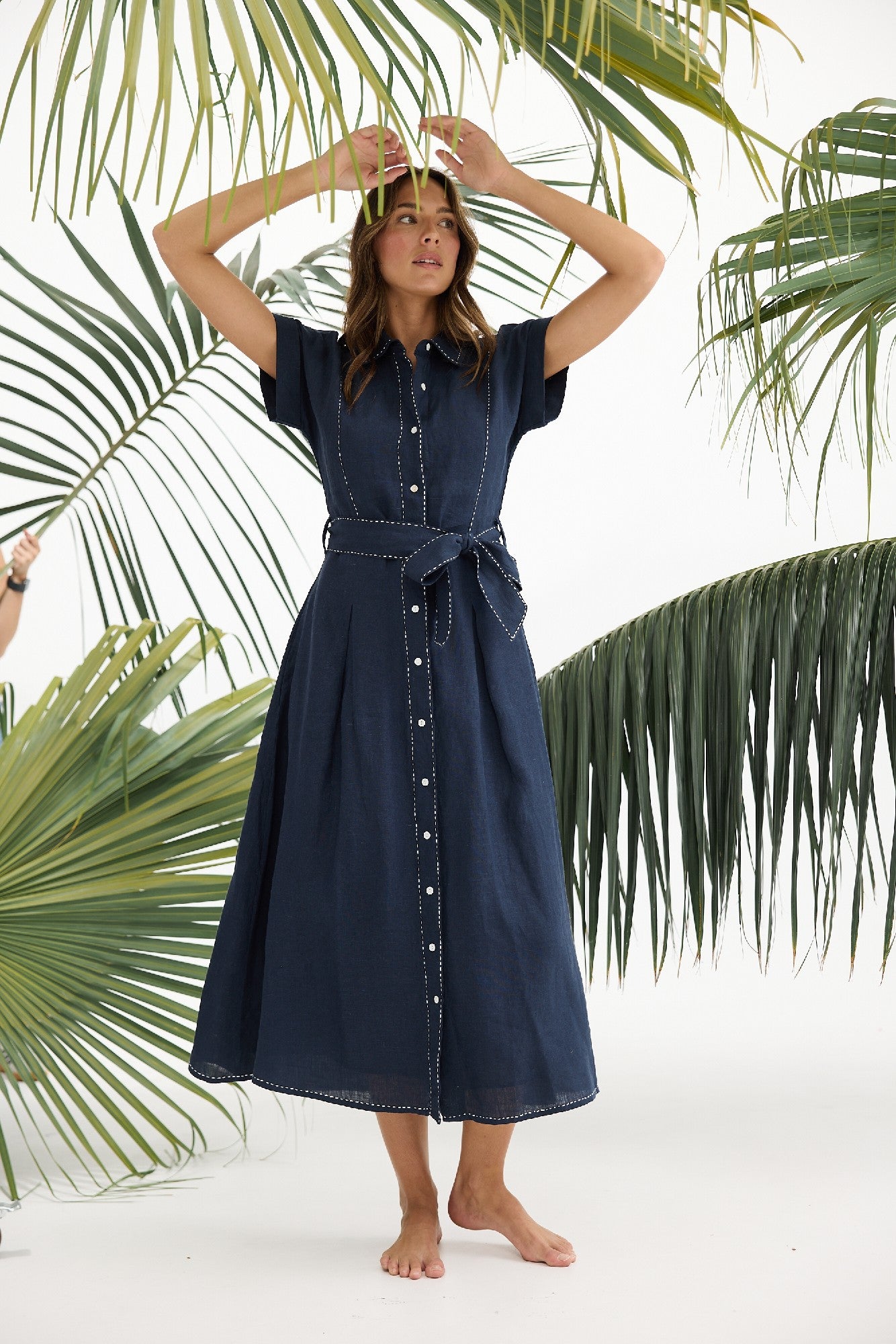 The Holiday Dress Cordelia – Navy is a versatile staple from Holiday, perfect for both everyday wear and polished summer occasions.
