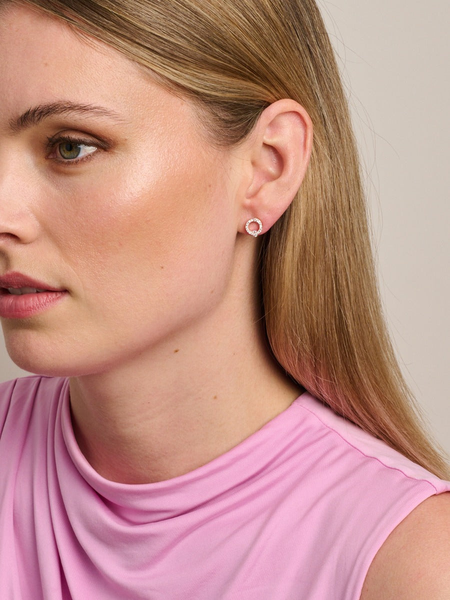 Add a touch of refined beauty to your accessory collection with the Tigertree Earrings Mary Rose Gold Crystal. These delicate earrings feature dazzling crystals set in a classic open circle design, crafted from rose gold-plated recycled brass. The addition of 925 silver posts ensures comfort and quality, making these earrings a perfect choice for any occasion.