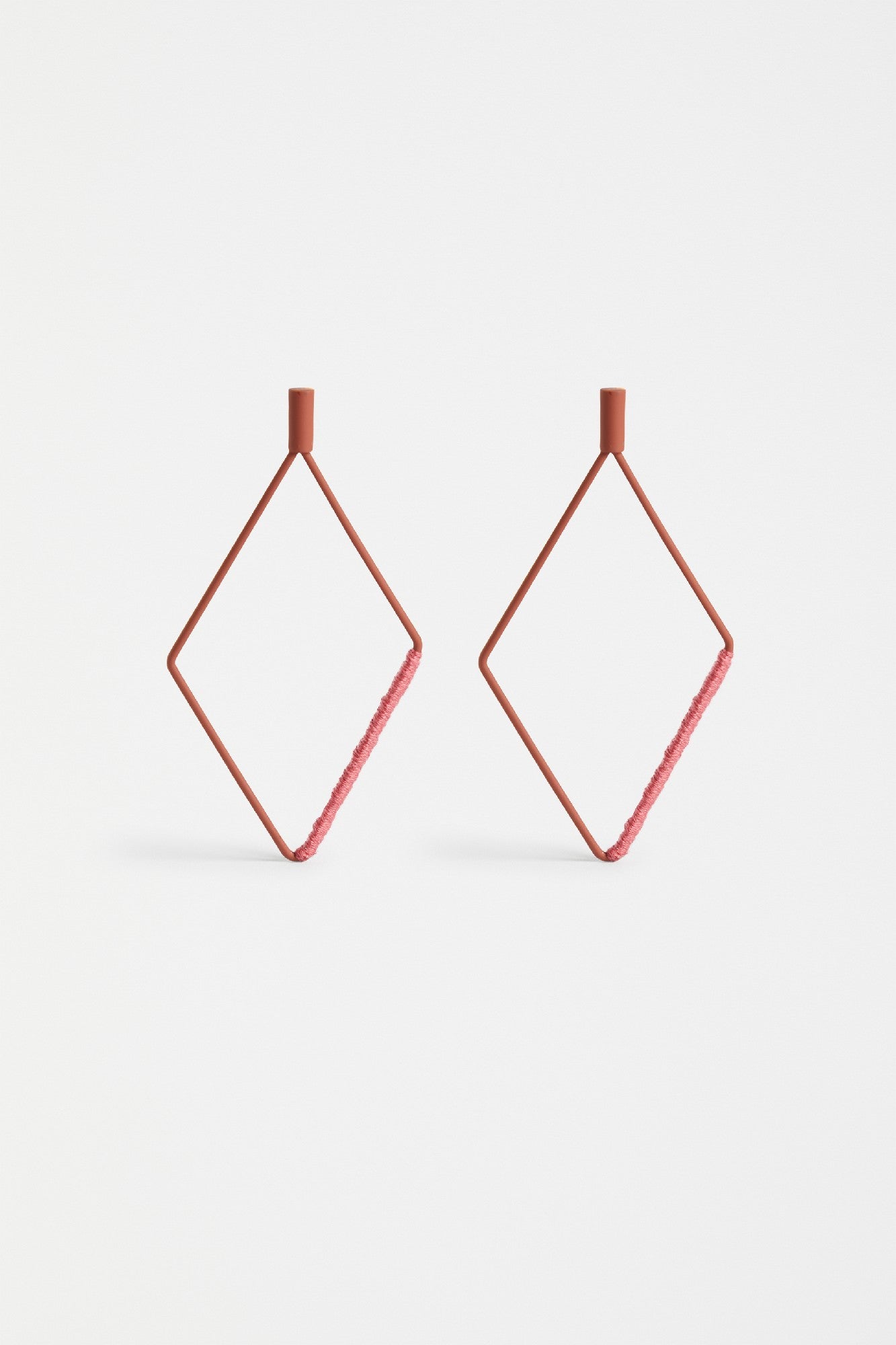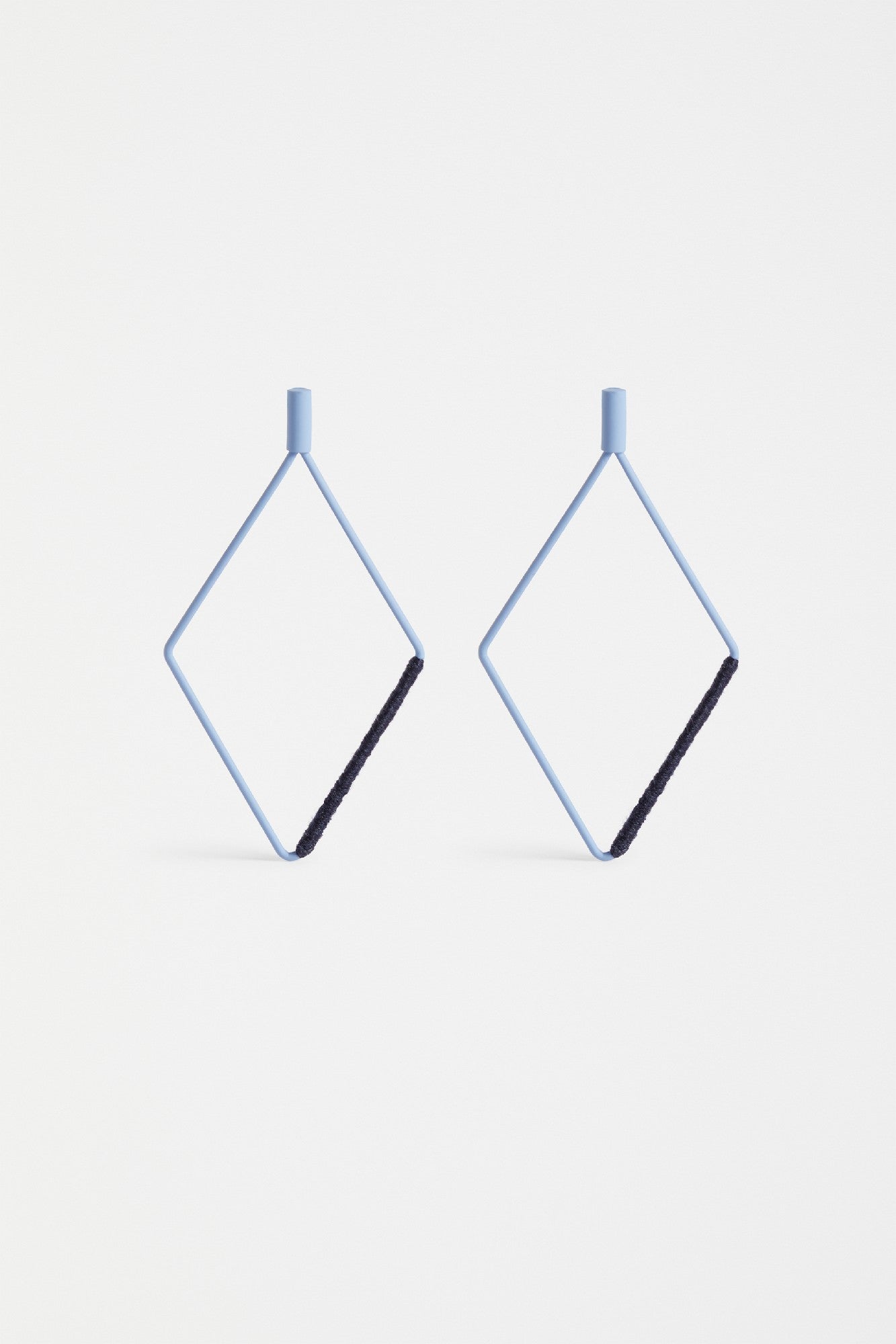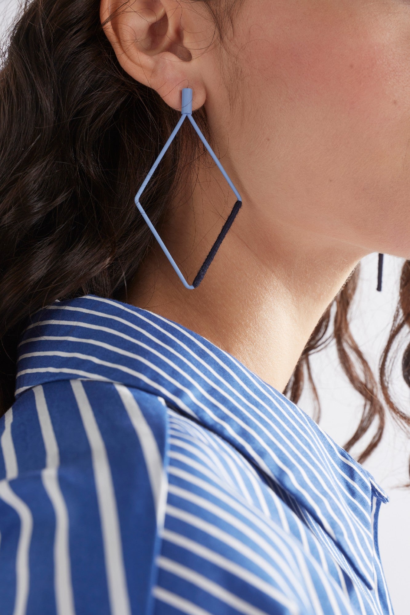 Make a subtle statement with the Elk Earrings Nett Drop, a refined yet creative design featuring a diamond-shaped drop suspended from a sleek metal base. Crafted from lightweight metal, the open diamond silhouette is accented by a contrasting thread detail, adding a handcrafted touch to the minimalist form. Lightweight and versatile, these earrings are perfect for those who love understated style with a modern edge.