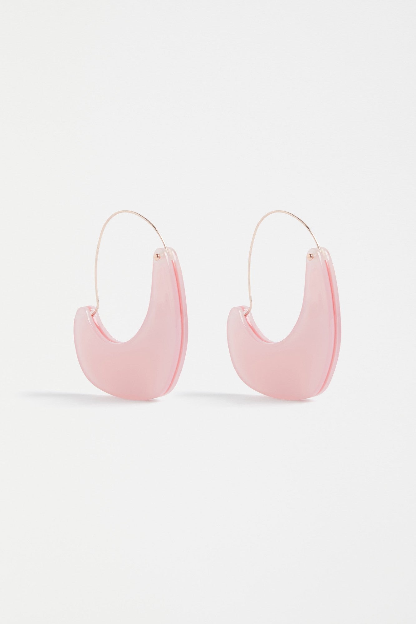 Soft, sculptural, and effortlessly playful, the ELK Earrings Neve - Light Pink bring a fresh and feminine touch to your jewellery collection. Featuring a delicate crescent shape crafted from translucent acetate, these earrings offer a unique, luminous finish that catches the light beautifully. The hinged hoop design ensures gentle movement, adding a fun and dynamic element to your look. This subtle yet statement-making pink hue is perfect for elevating both casual and dressy outfits.