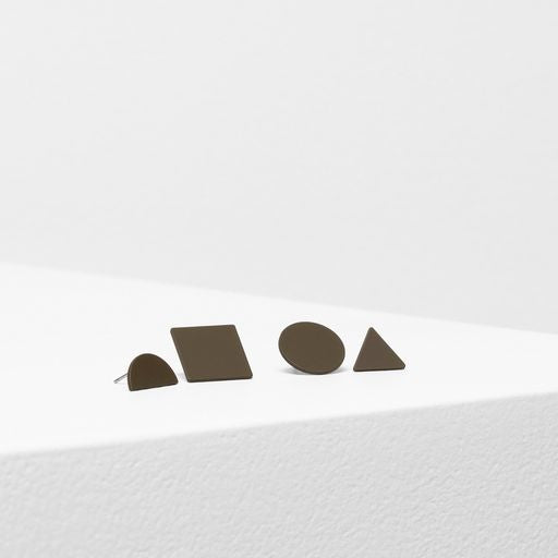 Playful, sculptural and full of styling potential—the ELK Earrings Gards Stud Set - Olivine is a curated collection of four mismatched stud earrings designed for mixing, layering, or colour blocking. With clean, geometric shapes in a beautiful olive green palette, this lightweight set offers endless possibilities for creative accessorising.