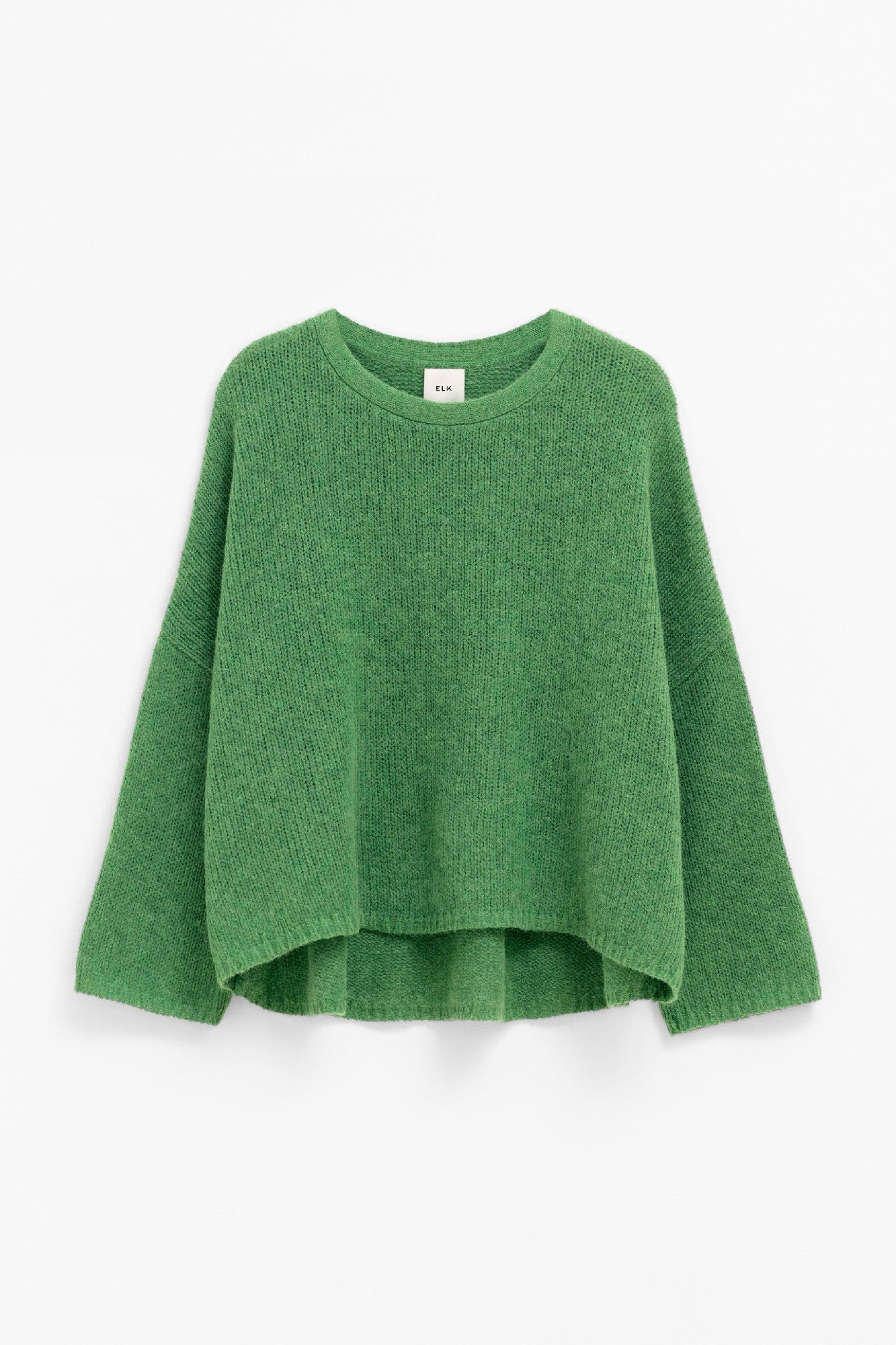 A timeless favorite, the Elk Agna Sweater is a best-selling style, loved for its effortless aesthetic and year-round wearability. Designed with a relaxed, boxy silhouette, this versatile knit features an exaggerated dropped shoulder and a wide fluted sleeve, adding a touch of casual elegance to any outfit. Crafted from a soft alpaca-wool blend, it offers warmth, breathability, and a cozy feel without bulk.