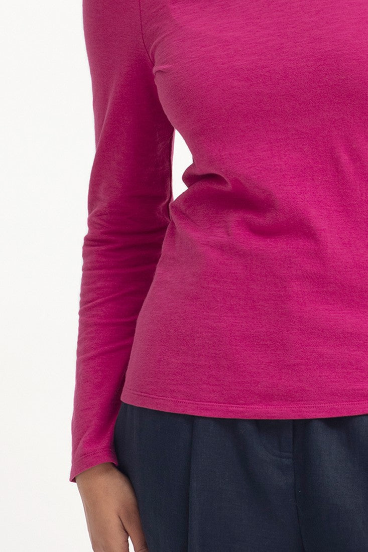 The Elk Arya Long Sleeve T-Shirt in Bright Pink is a stylish and sustainable addition to your wardrobe. Crafted from a blend of hemp and organic cotton, this fitted tee offers both comfort and eco-friendly appeal. The crew neck design and long sleeves make it a versatile piece, perfect for layering or wearing on its own.