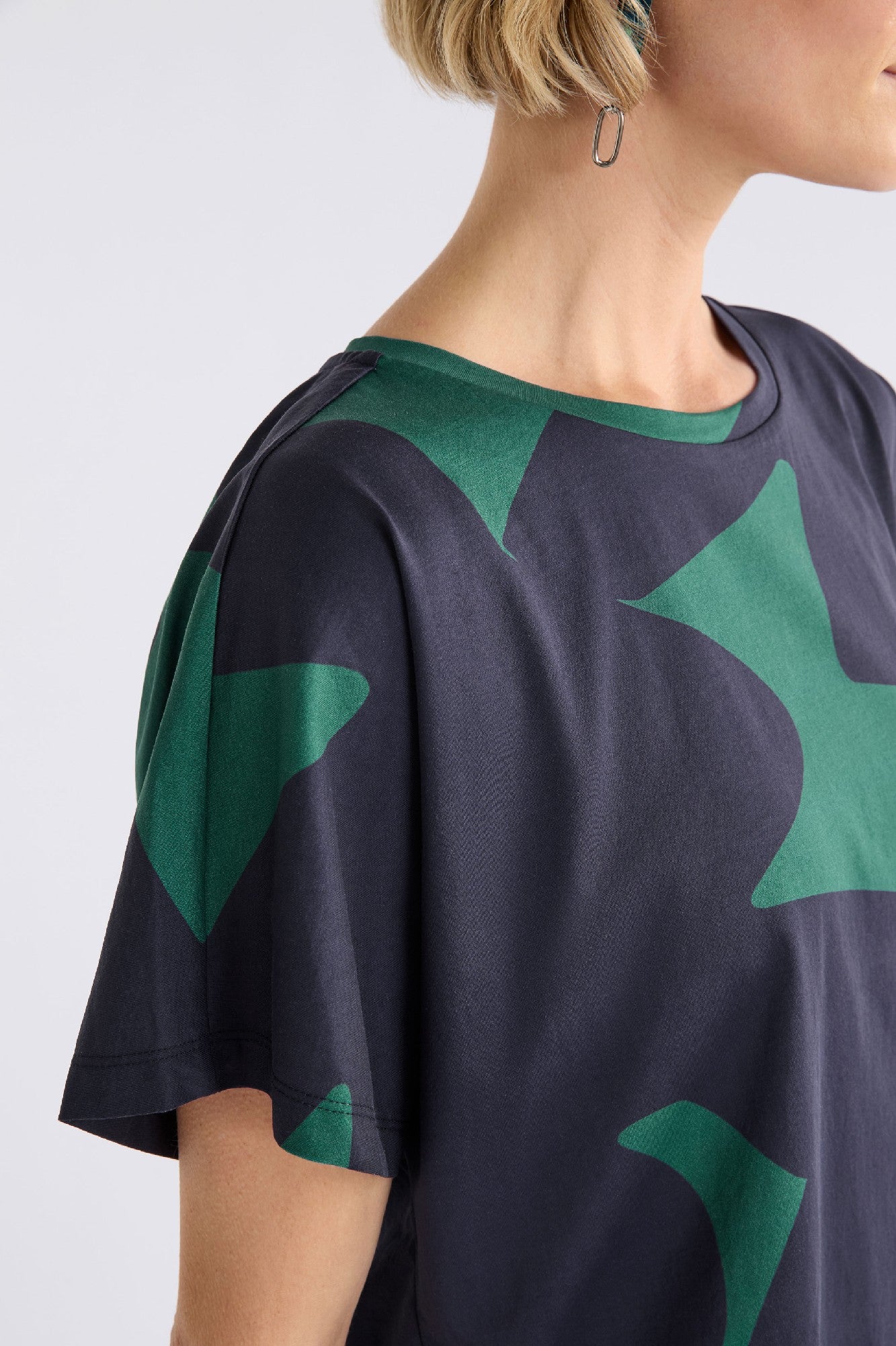 Fresh and contemporary, the ELK Tee Haki – Teal Terra is a relaxed short-sleeve top featuring ELK’s bold abstract teal-on-navy print. Crafted from breathable organic cotton, it’s designed with an easy fit that drapes softly through the body. The boxy silhouette and soft fabrication make this tee an elevated everyday essential that works across seasons.