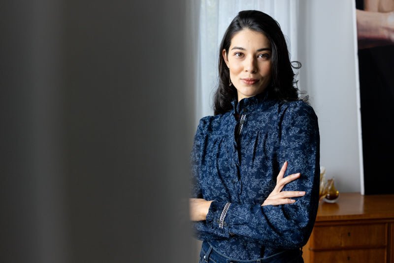 Lou loves styling this shirt with dark wash denim to really highlight the beautiful navy tapestry print. It’s an easy outfit that feels polished without trying too hard — perfect for lunch with friends or a relaxed day out on the Granite Belt.