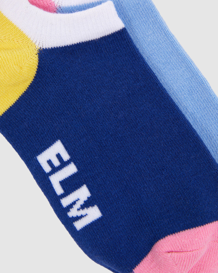 Bright, cheerful and endlessly comfy, the ELM Socks No Show 2pc - Holiday Sun Pink/Blue/Yellow are a must-have for your everyday wardrobe. This two-pack features exclusive Elm designs in a sunny colour palette of pink, blue and yellow, designed to keep your feet cool, fresh and full of personality. Made from 100% cotton, they’re perfect for all-day wear in your favourite low-cut shoes.