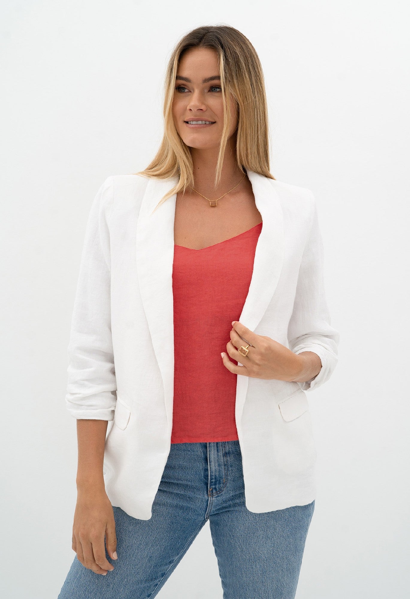 The Humidity Jacket Seville – White is a classic linen essential that adds fresh sophistication to every outfit – breathable, timeless, and beautifully effortless.