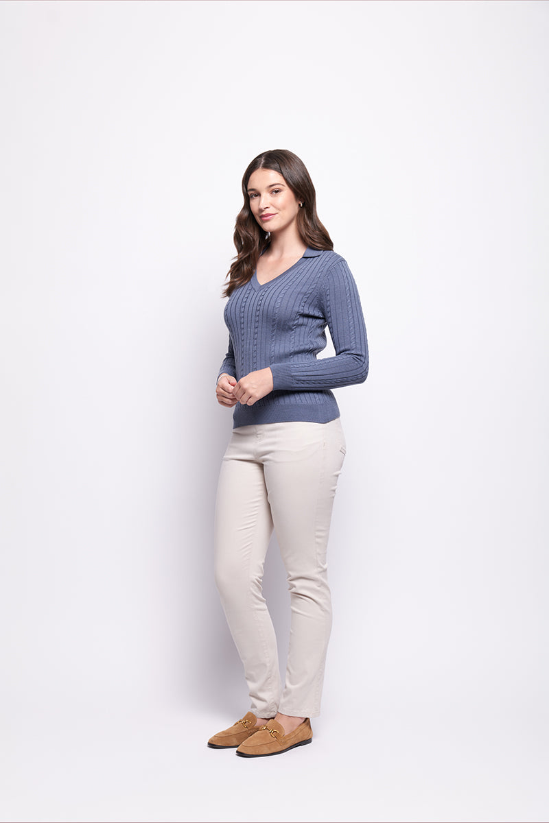 • Versatile chalk tone pairs effortlessly with bright or neutral tops