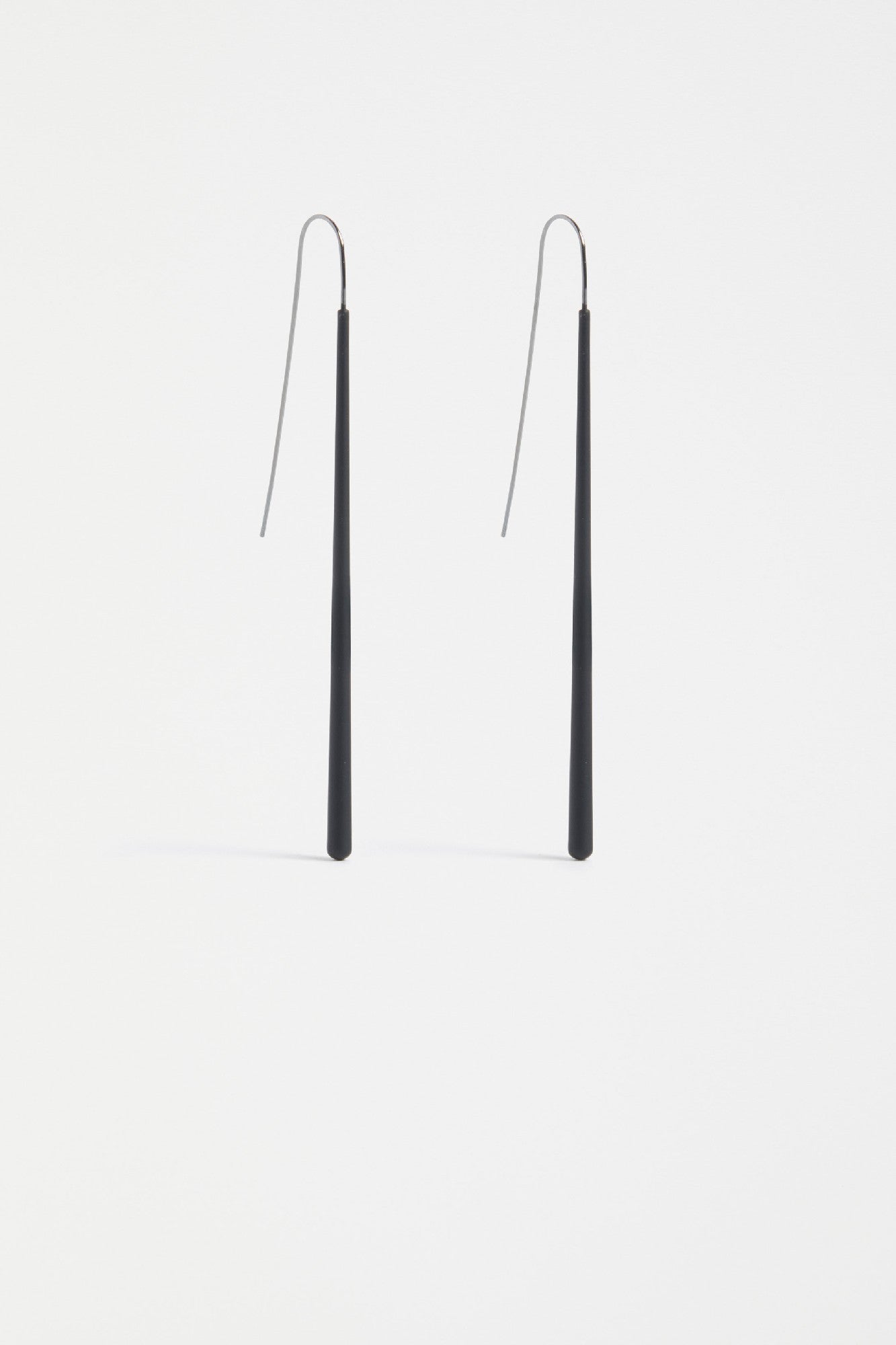 Introduce bold minimalism into your accessory collection with the ELK Earrings Ospenn Drop - Black. These dramatic drop earrings are crafted with a matte black bar and fine hook-through wire, creating a sleek silhouette that speaks to modern, sculptural design.