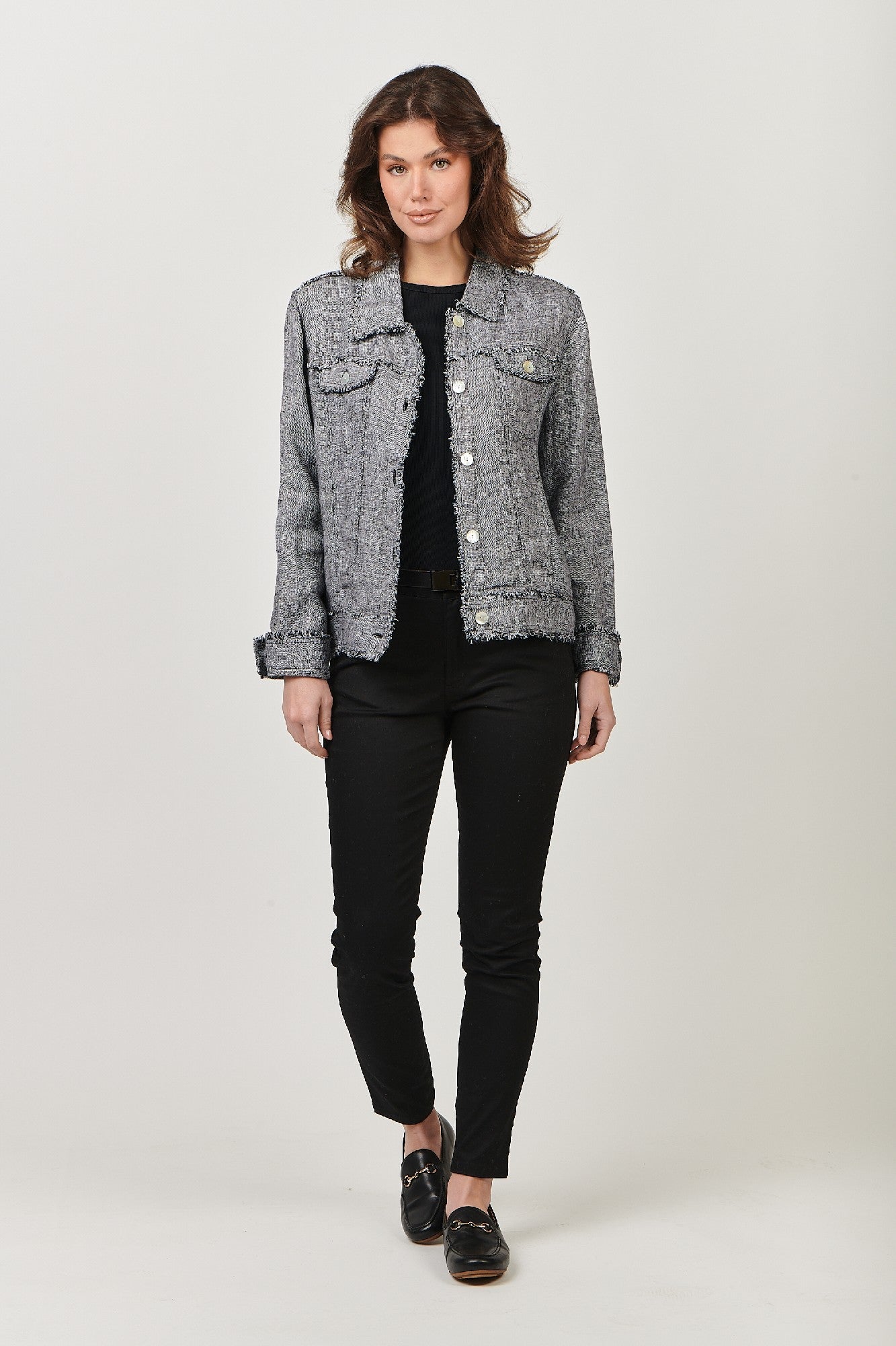 The Naturals Lucy jacket that will pair with just about anything, Lucy features a point collar, raw edges,buttons all the way down, and two breast - pocket flaps. Made from 100% linen, this is a versatile, lightweight jacket