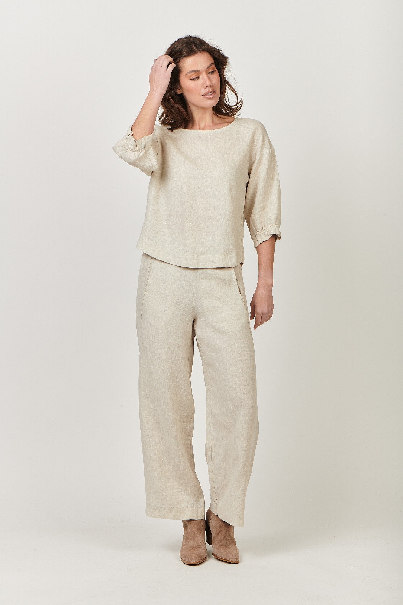 Style the Naturals Pant - Sand 398 with a simple white tee or its matching linen blouse for a tonal look that’s relaxed yet refined. Add a statement sandal or ankle boot, and layer with a denim jacket or knit for trans-seasonal versatility.