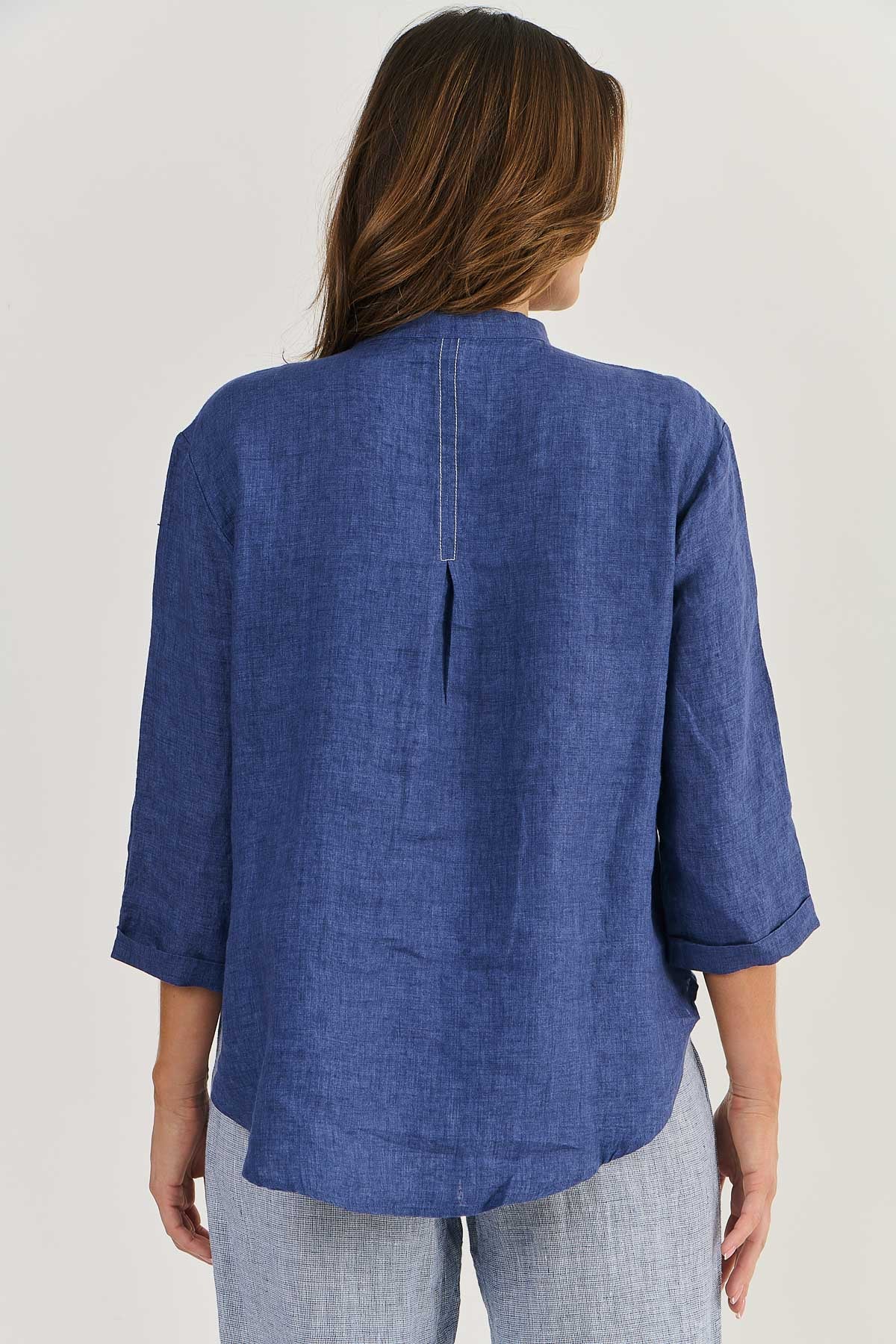 Light, breathable linen in a refined cut — the Naturals Top Delta 511 features 3/4 sleeves and a collar-less neckline. Subtle white stitching detail adds elegance to the minimalist design, making this top a versatile piece for casual wear or smart layering.