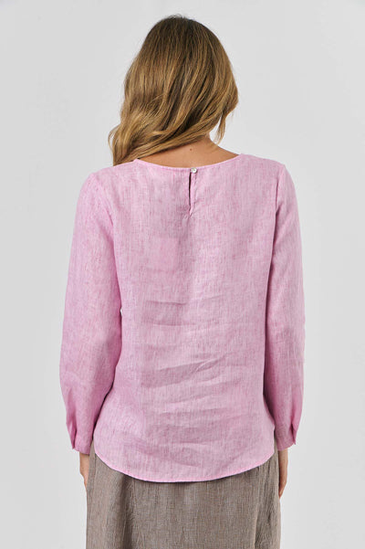 Add a pop of color to your wardrobe with the Naturals Top Long Sleeve 574 Verbena. Crafted from lightweight linen, this elegant top in a soft verbena hue offers a perfect blend of comfort and style for any occasion.