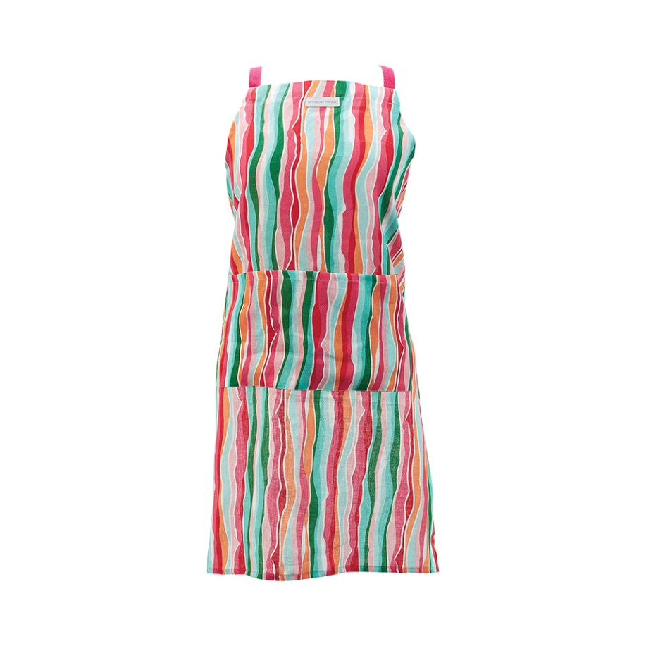 Add a playful pop of colour to your daily routine with the Annabel Trends Apron Linen Sherbet Ribbons JH, a beautifully designed apron crafted from 100% pure linen. Featuring the eye-catching Sherbet Ribbons print by artist Julie Harrison, this lightweight yet durable apron is both stylish and practical – perfect for cooking, baking, or pottering in the garden. The adjustable waist tie ensures a comfortable fit, while the front pocket is ideal for keeping utensils or garden tools within reach.