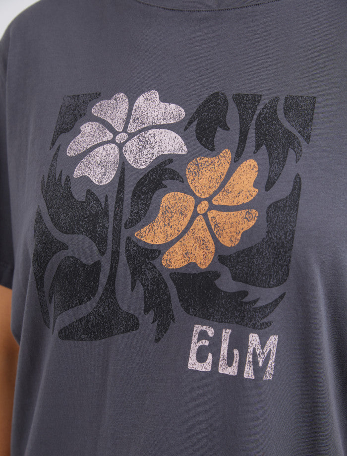 Elevate your casual style with the Elm Acacia Tee in Washed Black—a perfect blend of comfort and unique design.