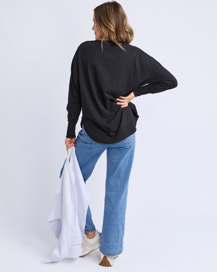 The Foxwood Crew Farrah Long Sleeve – Black is a versatile, easy-wear essential you’ll rely on season after season, available online and in-store at Pink Poppies Living Creatively, Stanthorpe.
