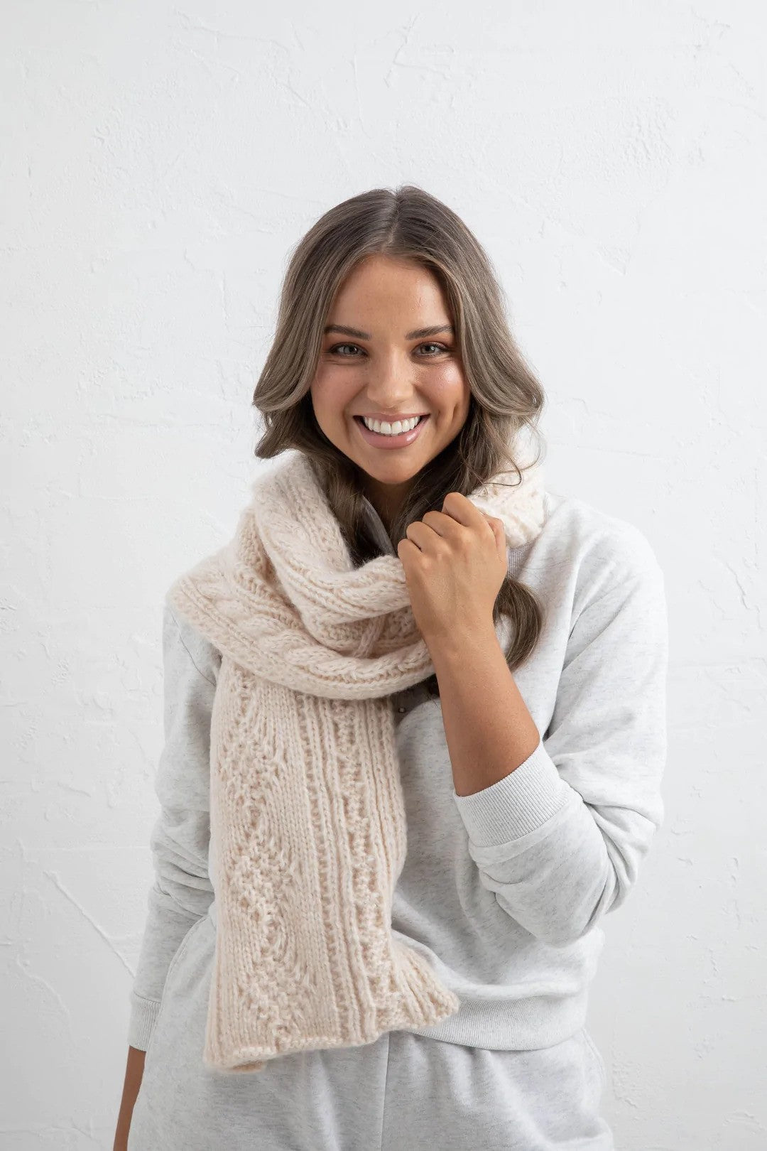 The Holiday Scarf Stormie - Natural is perfect for layering over coats, knitwear, or casual outfits. Drape it loosely over your shoulders for a relaxed vibe, wrap it snugly for extra warmth, or style it with a matching beanie for a chic winter ensemble.