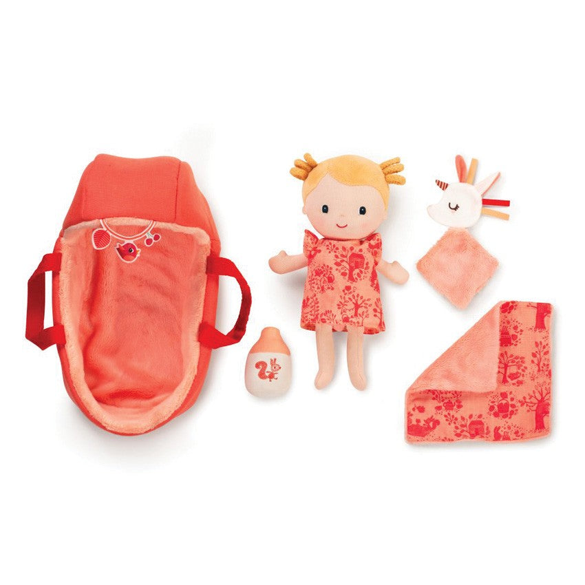 With her adorable features, cuddly softness, and thoughtful accessories, Lilliputiens Baby Lena is a beautiful and sustainable companion that children will love caring for every day.