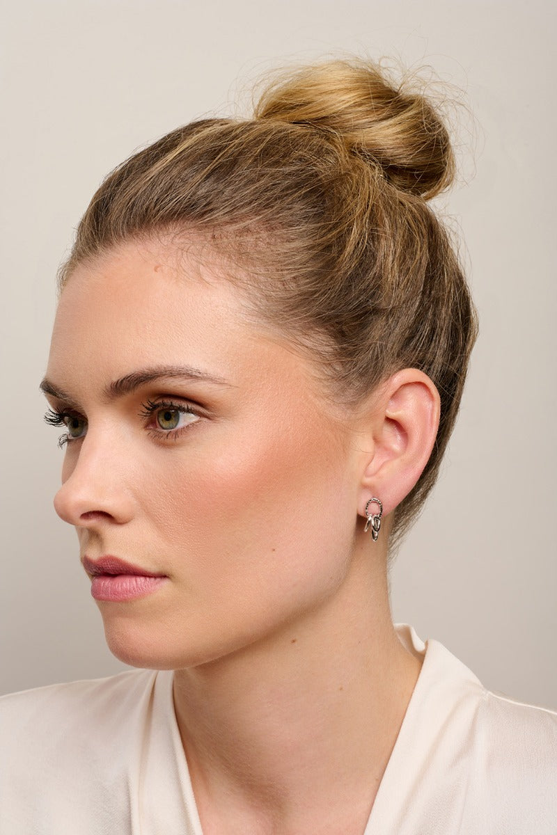 Stylish and contemporary, the Tiger Tree Earrings Silver Mini Rings Trio feature a trio of interlinked mini rings for a modern yet understated look. Crafted from rhodium-plated recycled brass with hypoallergenic posts, these versatile earrings are perfect for elevating your everyday style.