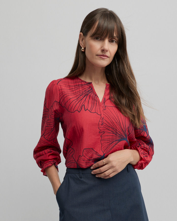 The Yarra Trail Staten Blouse is a beautifully lightweight printed blouse designed for effortless everyday style. Featuring an exclusive Yarra Trail floral print in rich red tones with striking navy linework, this piece brings colour and personality to your wardrobe while maintaining the relaxed elegance the brand is known for. Easy to wear and flattering through the body, the Yarra Trail Staten Blouse is perfect for work, weekend outings or layering through the seasons. Available online from Pink Poppies Living Creatively, your proudly regional Stanthorpe boutique.