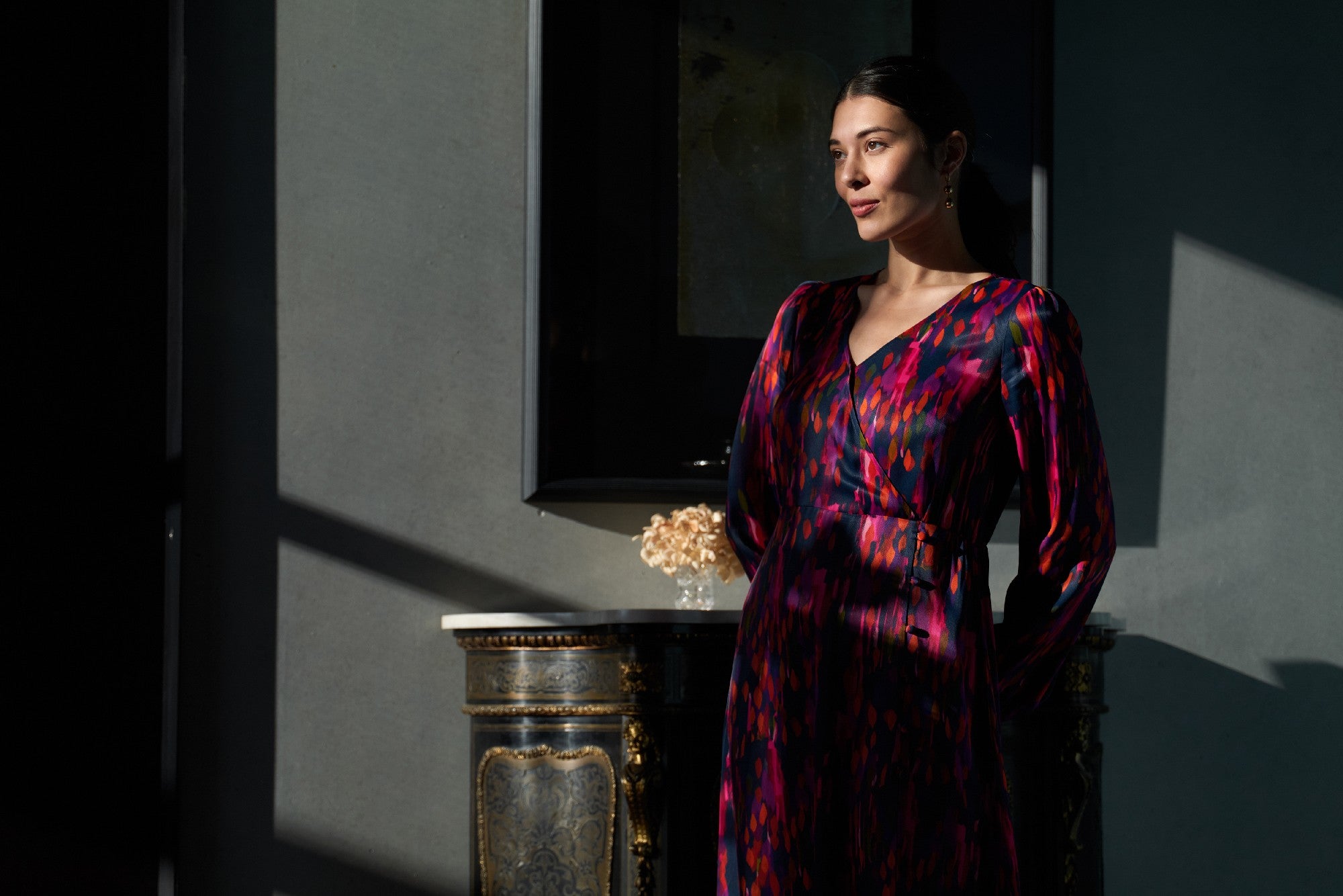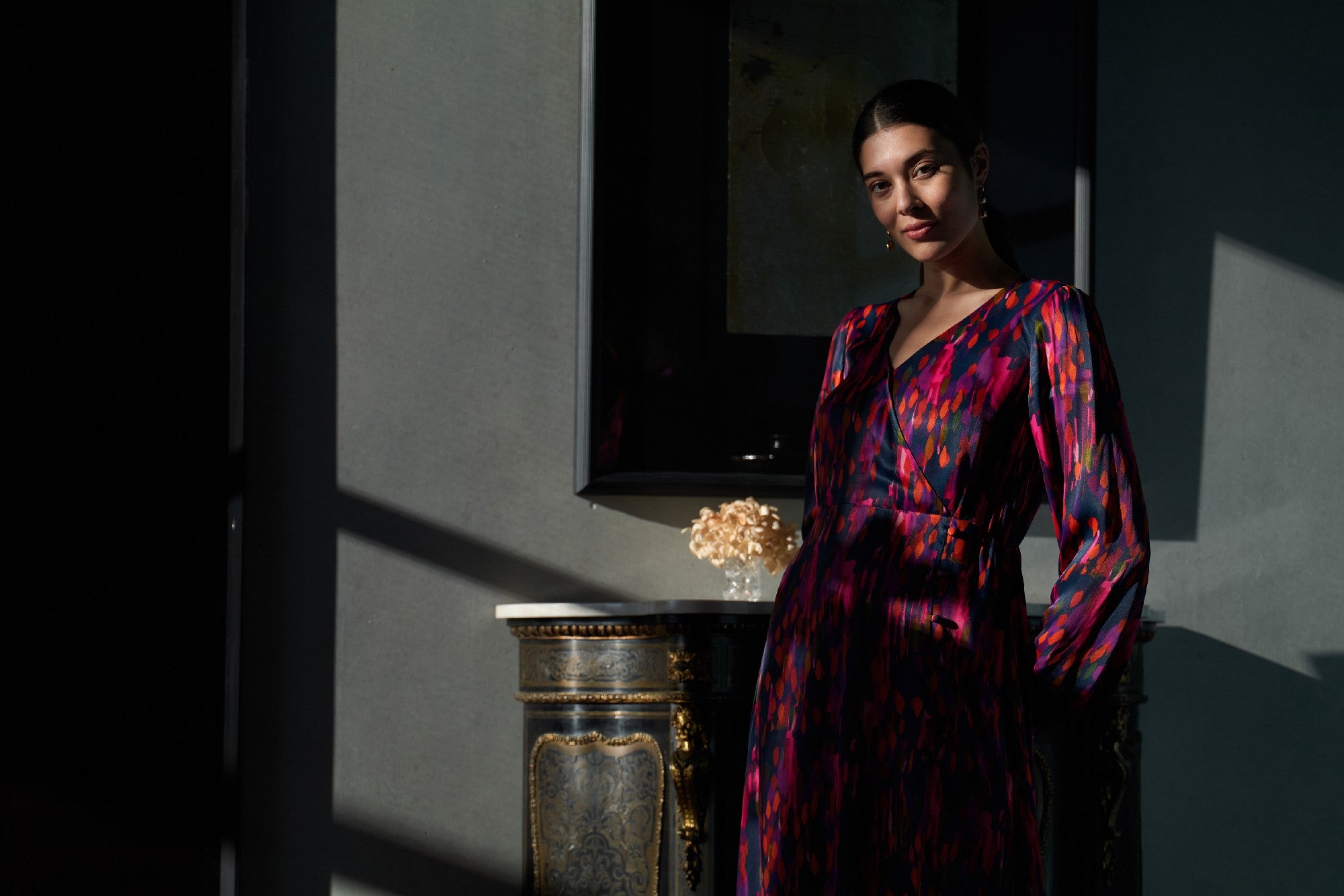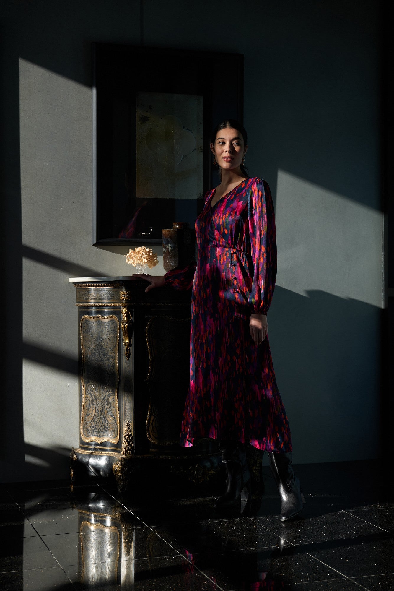 Turn heads with the FOIL Blockbuster Dress in the stunning "Good Impression" print. Crafted from 100% viscose, this lightweight and breathable dress drapes beautifully on the body, offering effortless elegance for any occasion. Featuring a flattering silhouette, soft round neckline, and long sleeves, the dress is designed to keep you comfortable while exuding sophistication. The eye-catching "Good Impression" pattern brings a pop of personality to your wardrobe, making it perfect for everything from workwear to weekend outings.