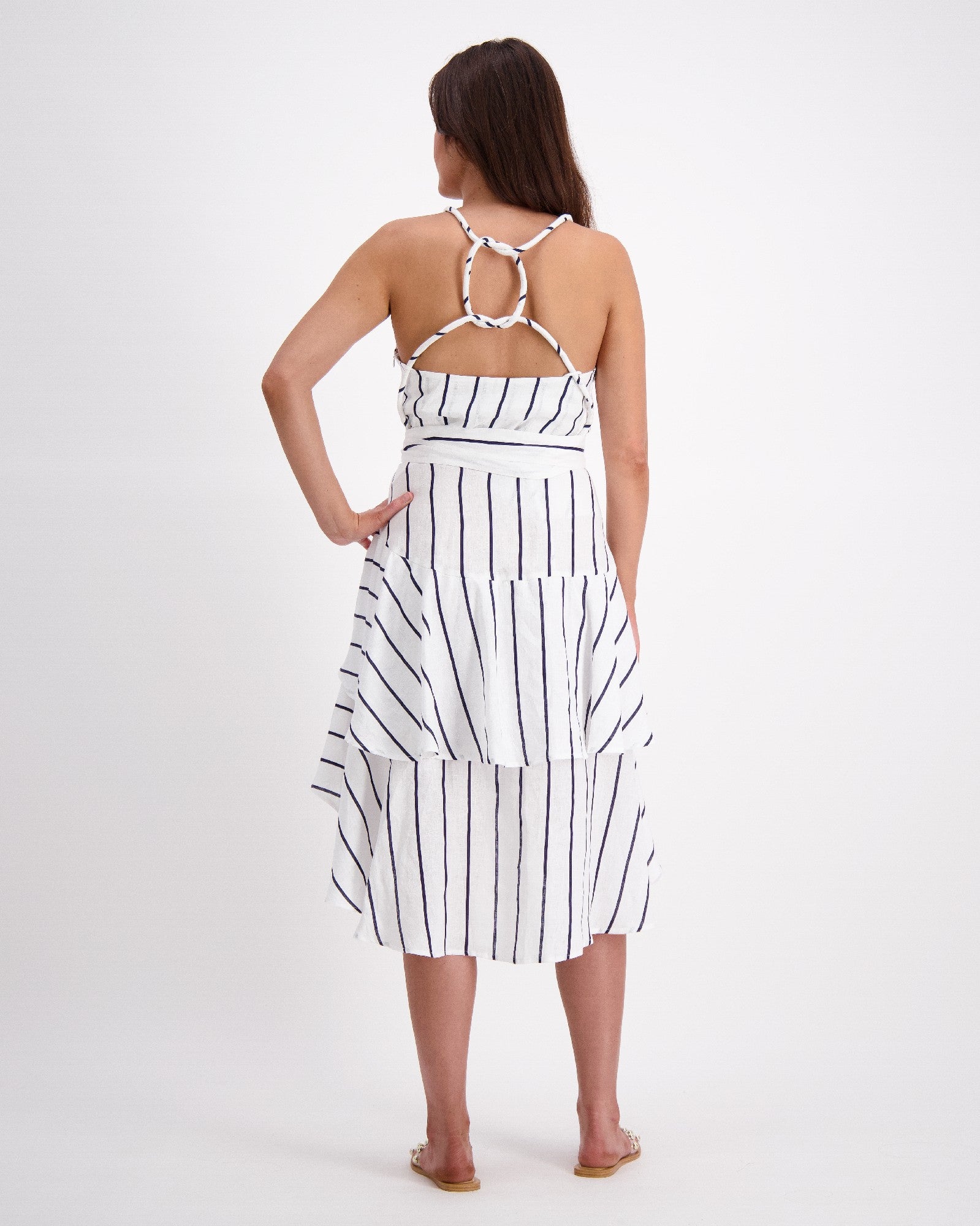 The Luoni Skirt Francesca – White with Small Navy Stripe is a timeless linen essential that captures relaxed coastal style – perfect for effortless, breathable dressing all season long.