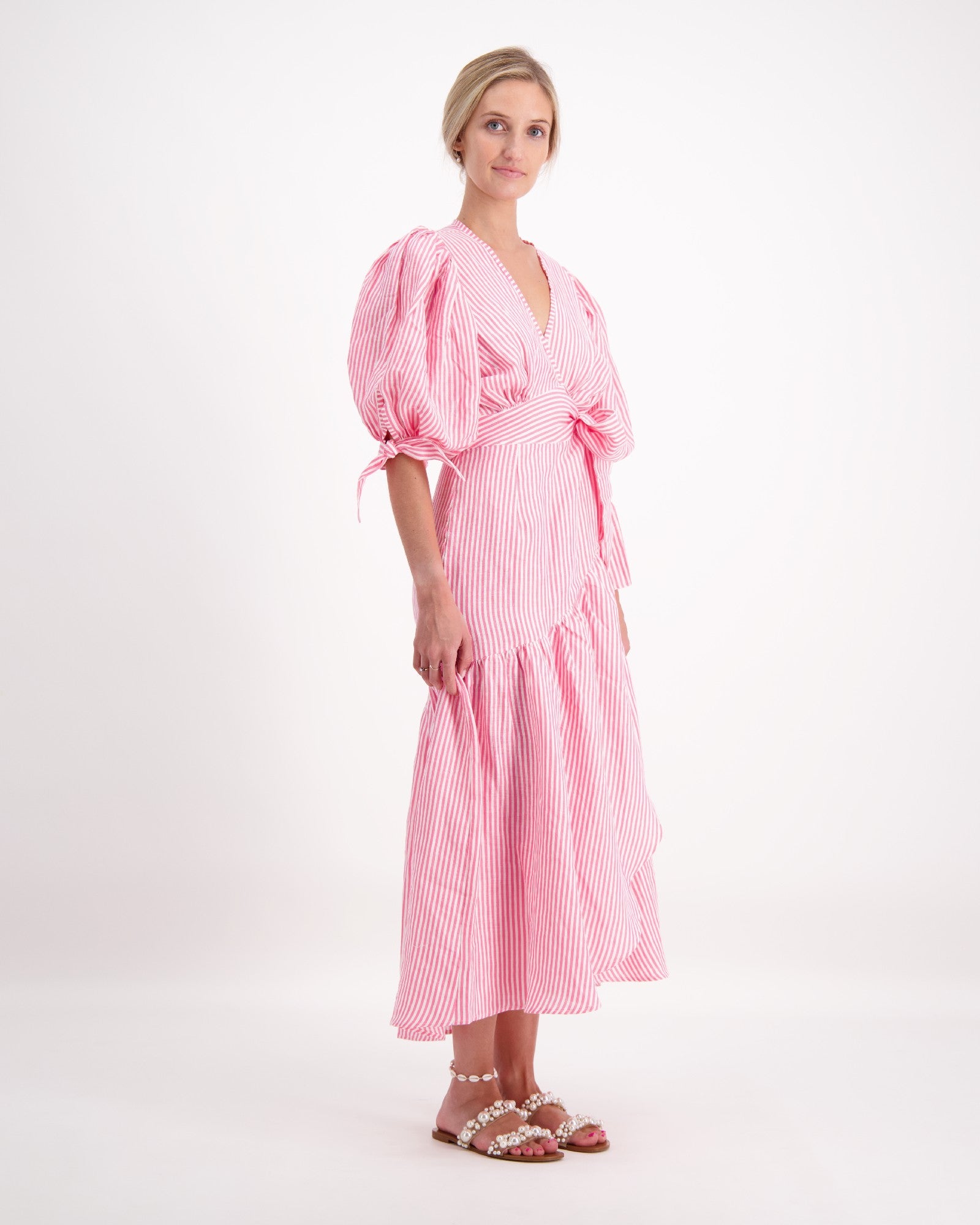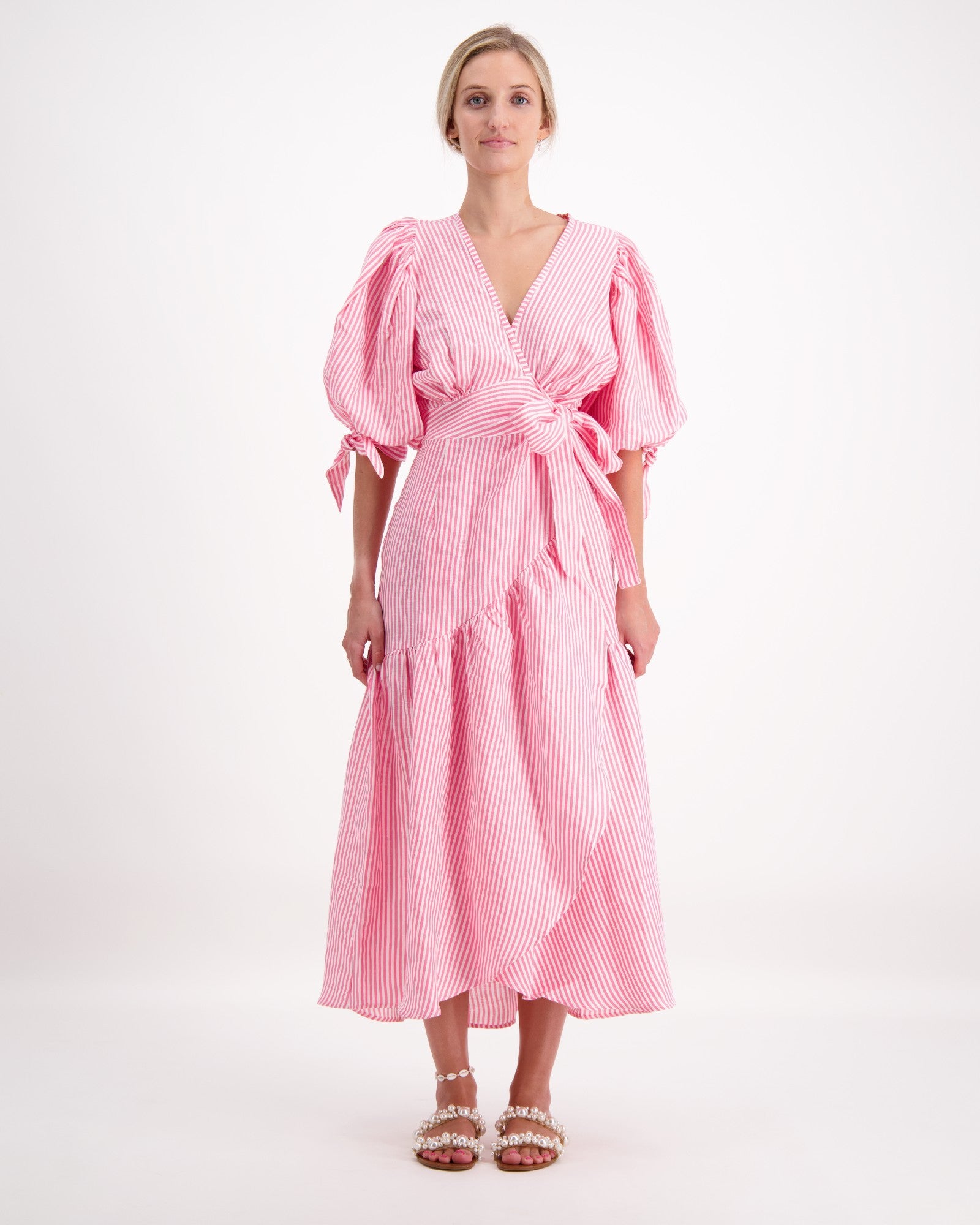 Luoni Wrap Dress Ariana – Pink White Stripe