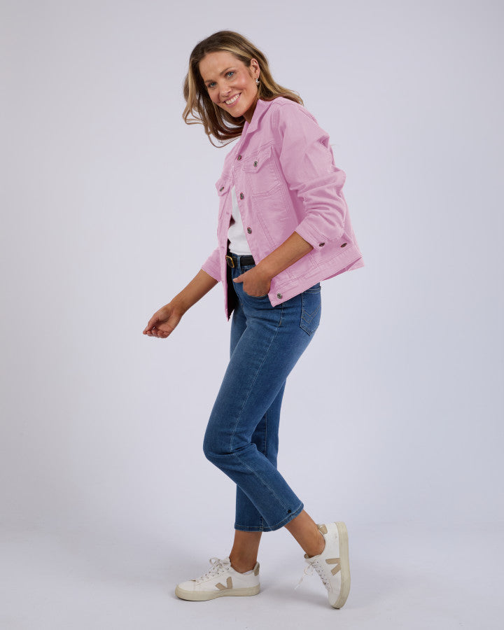 The Elm Jacket Tilly – Dusk Pink is a fun yet timeless staple that brightens your wardrobe while keeping classic denim jacket appeal – a must-have from Elm Lifestyle at Pink Poppies.