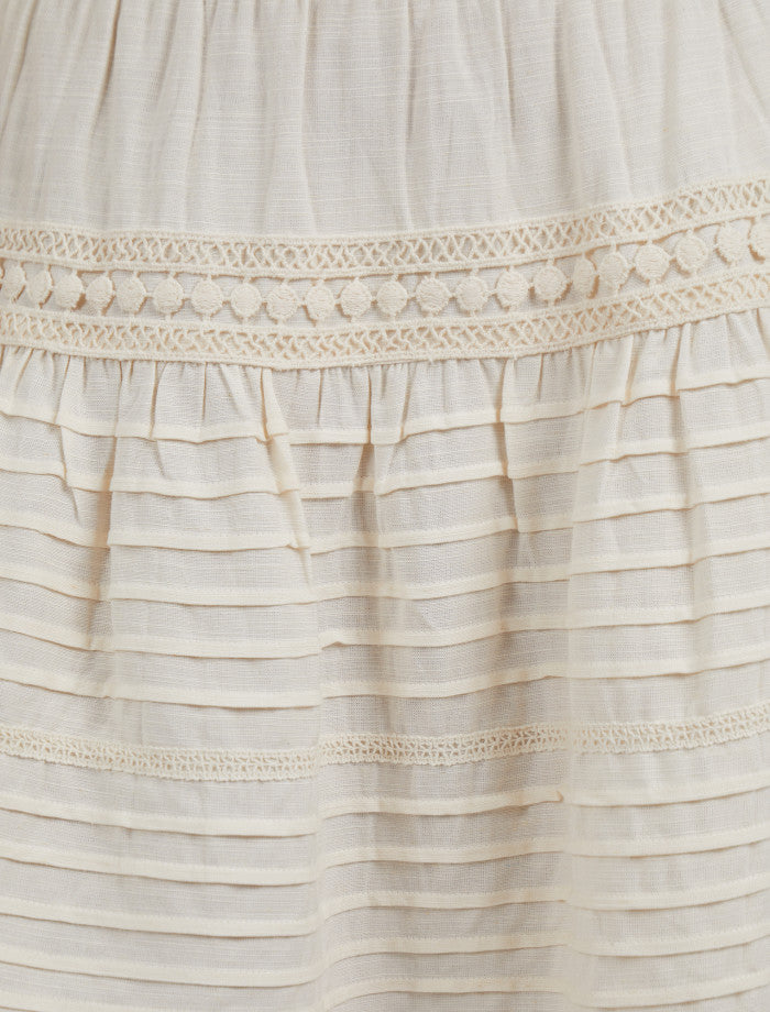 Feminine, fresh, and effortlessly versatile, the Elm Skirt Market – Pearl is the perfect addition to your summer wardrobe. Made from a soft linen blend with a superior drape, this easy-wear skirt flatters every figure with its relaxed silhouette, pintuck detailing, and pretty lace trim.