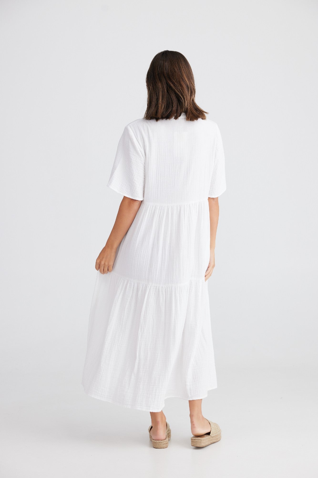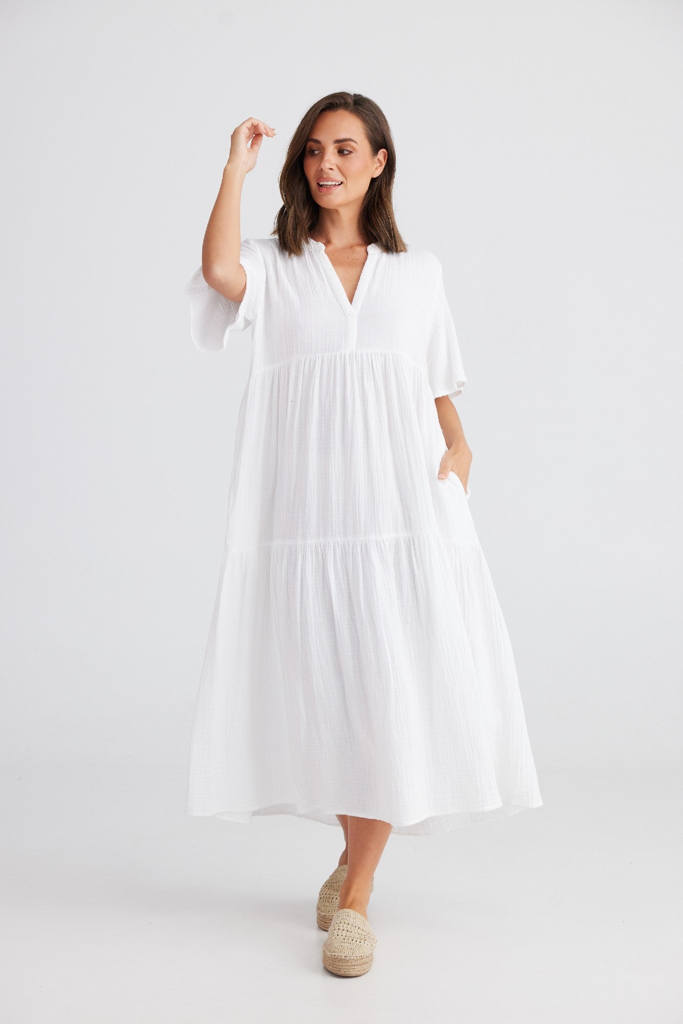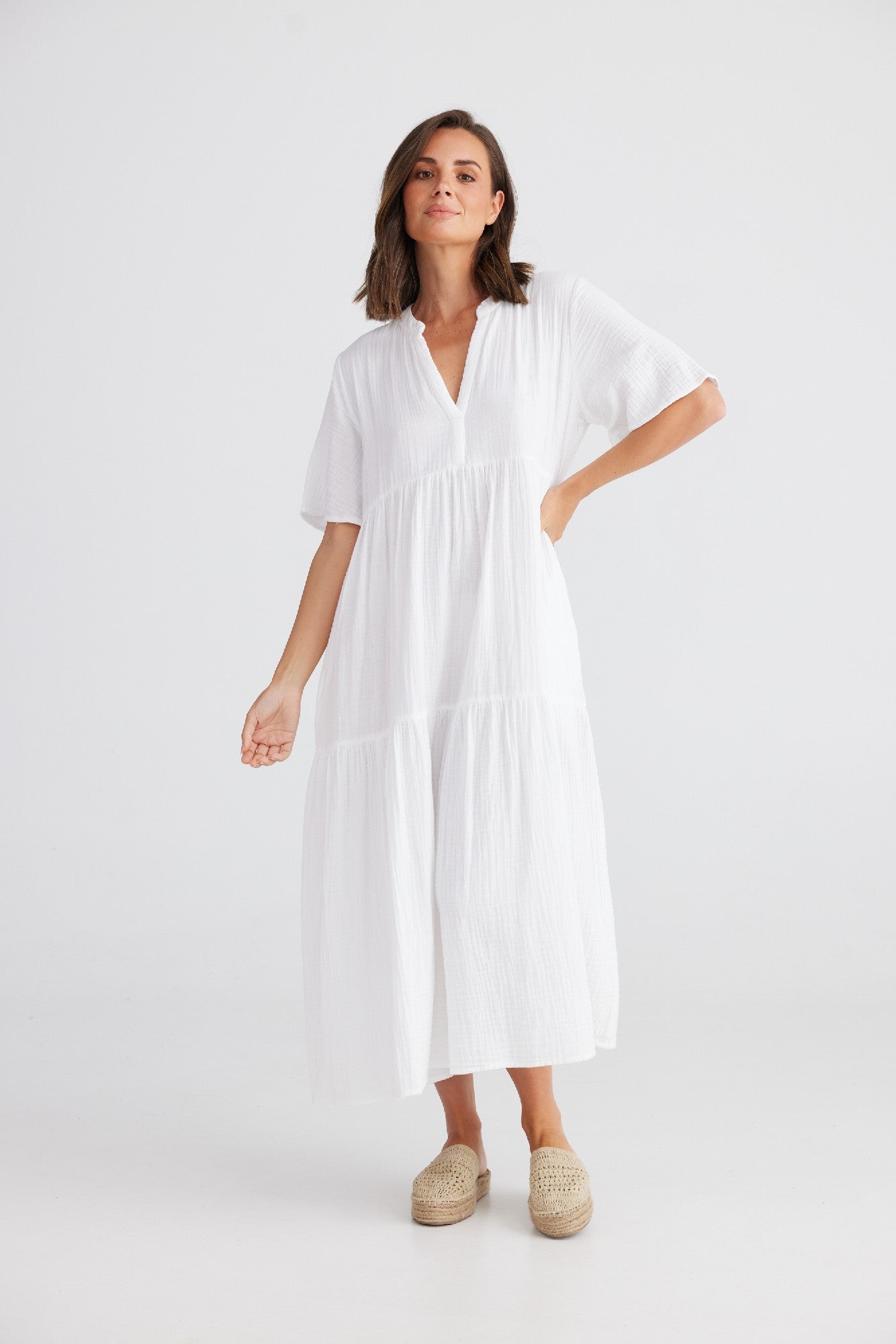 Simple, stylish, and effortlessly chic, the Holiday Dress Lynwood - White is available online and in-store at Pink Poppies Living Creatively, your Stanthorpe boutique for timeless Australian-designed summer fashion.