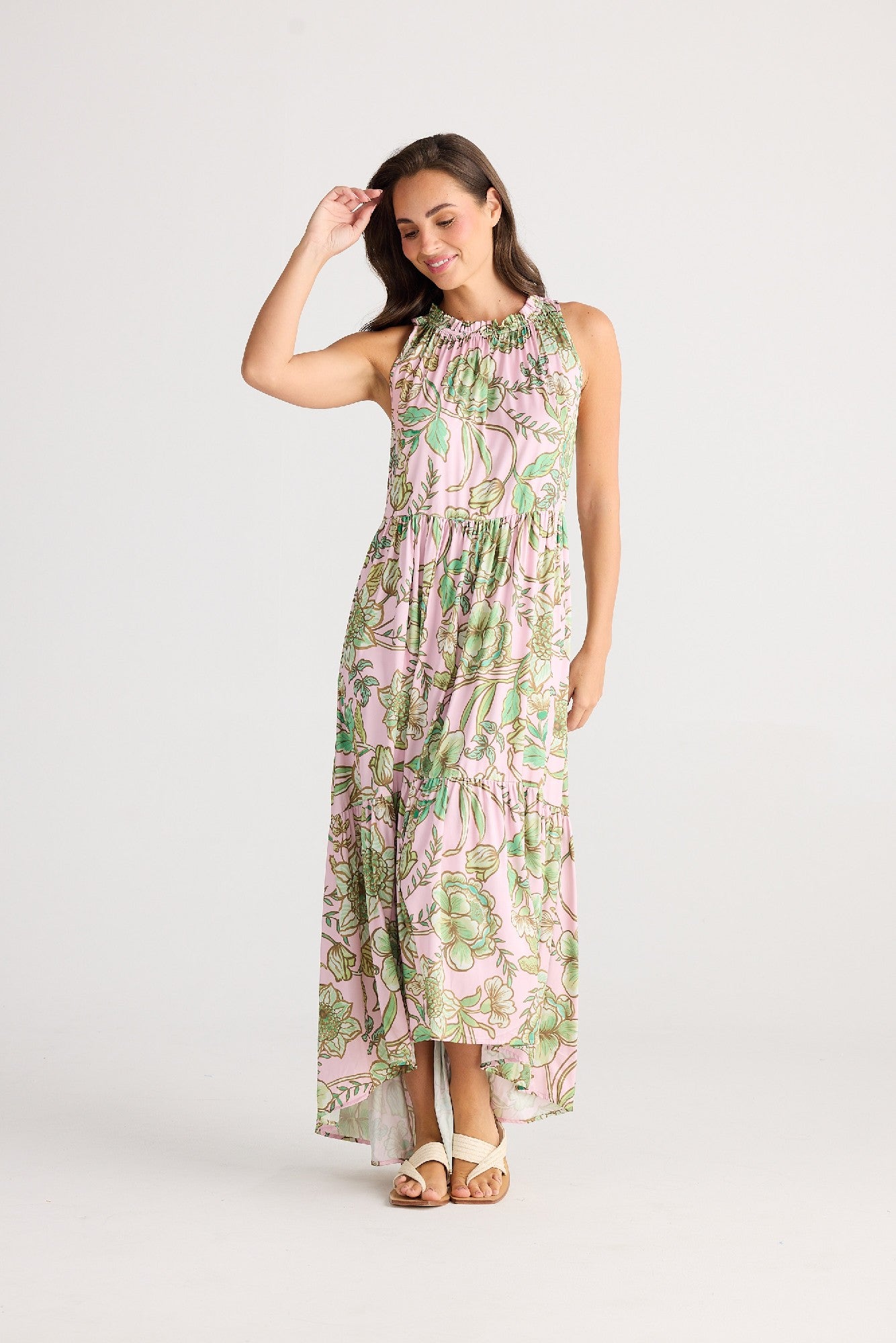 Vibrant, breezy, and beautifully effortless — the Holiday Dress Margot - Columbian Floral is a standout style designed for relaxed sophistication. Crafted from 100% viscose, this best-selling dress combines a soft, lightweight feel with an eye-catching floral print that’s perfect for summer escapes or weekend outings. The gathered neckline and tiered skirt create soft movement, while the hi-lo hem adds a touch of modern flair.