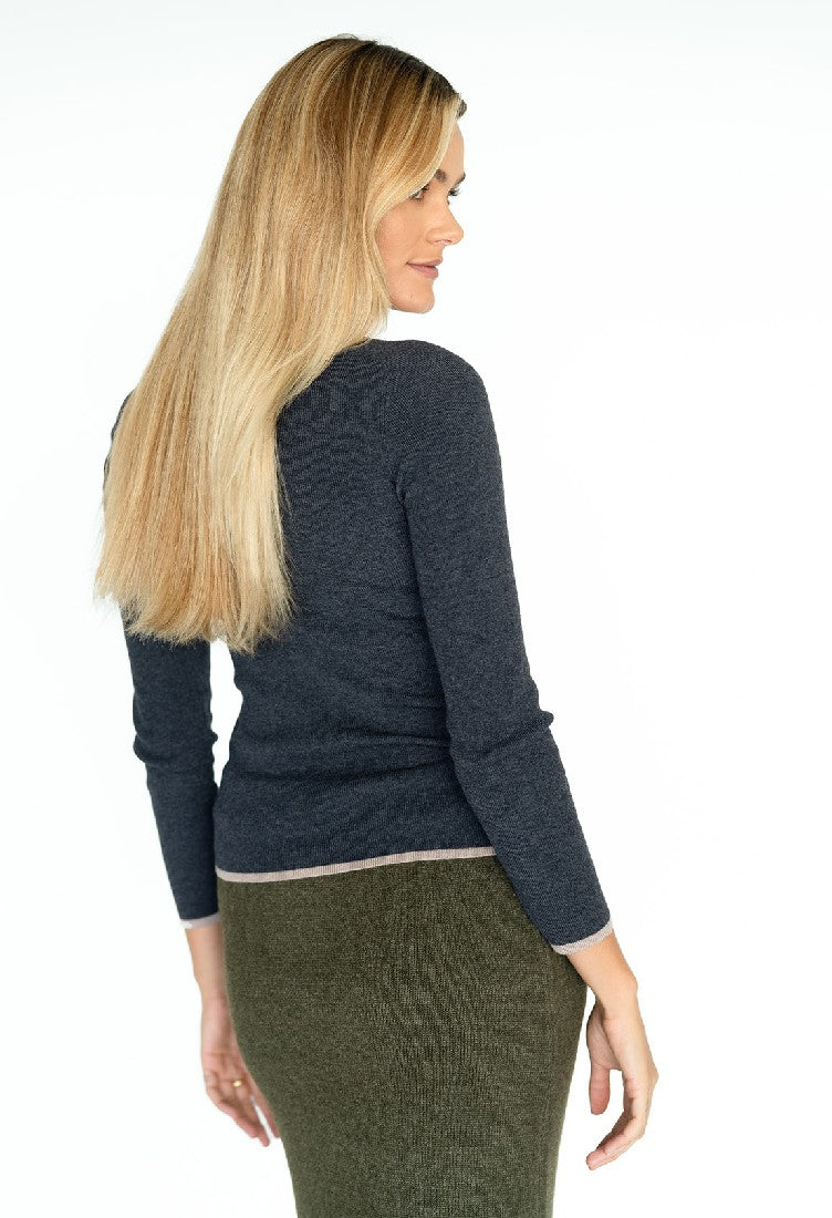 Soft, stylish, and effortlessly versatile — the Humidity Skivvy Papillon - Charcoal is a must-have winter essential. Crafted from a beautifully soft knit, this piece is designed to keep you cosy while offering endless styling options. Featuring a chic contrasting band on the button and a refined skivvy neckline, it’s perfect for layering or wearing on its own as a polished knit.