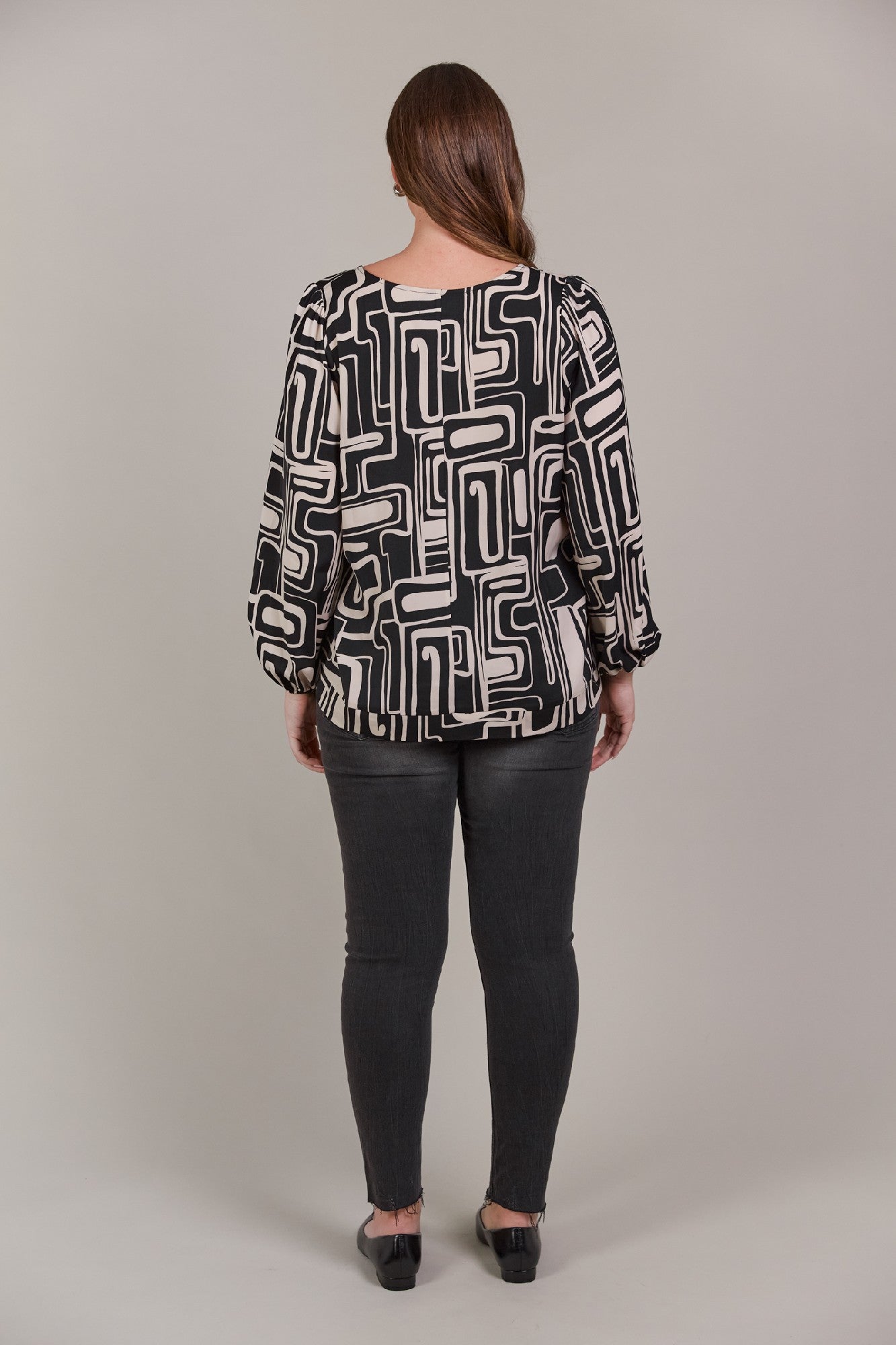 Eb&I've Top Elsie - Geo | Geometric Print Long Sleeve Blouse