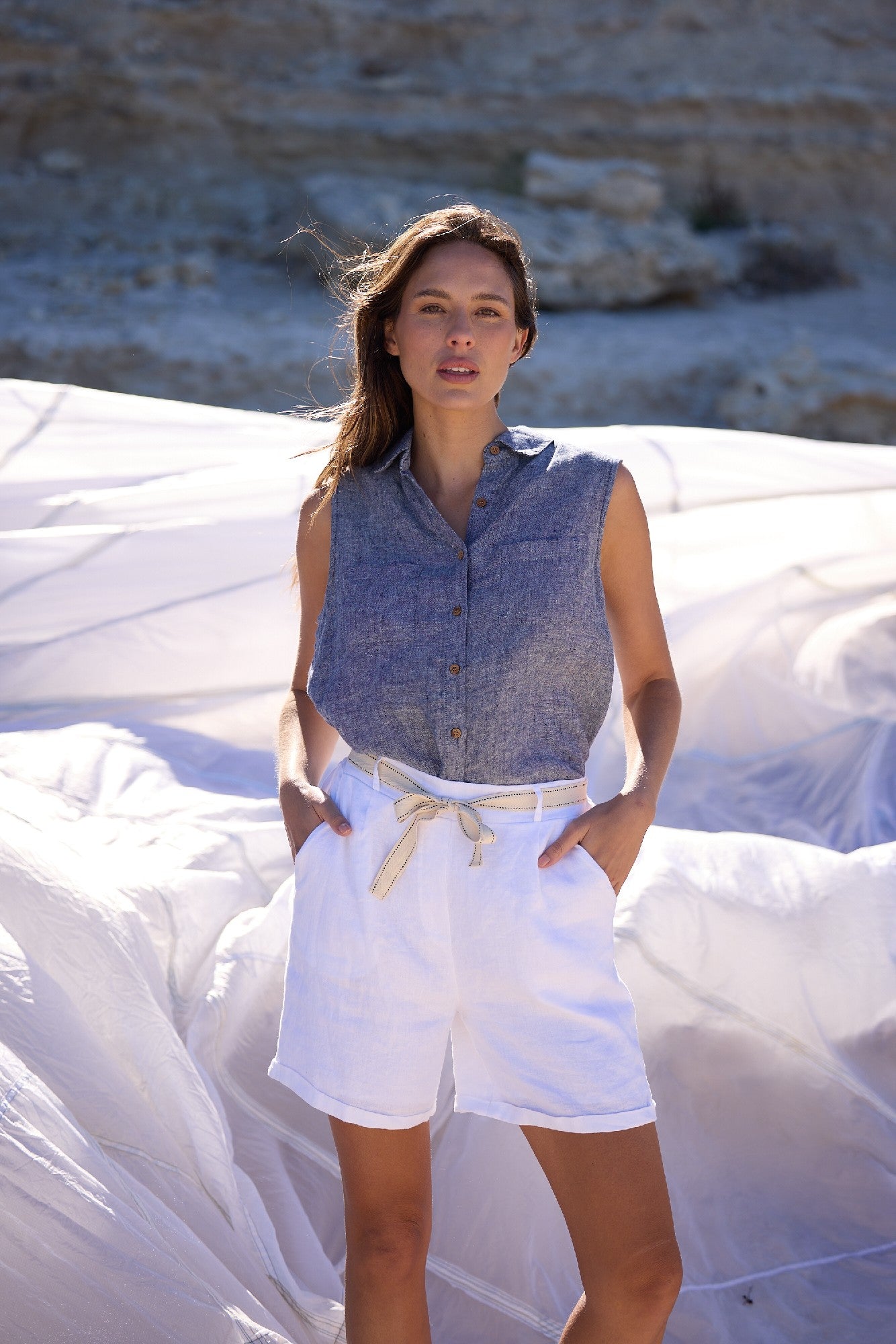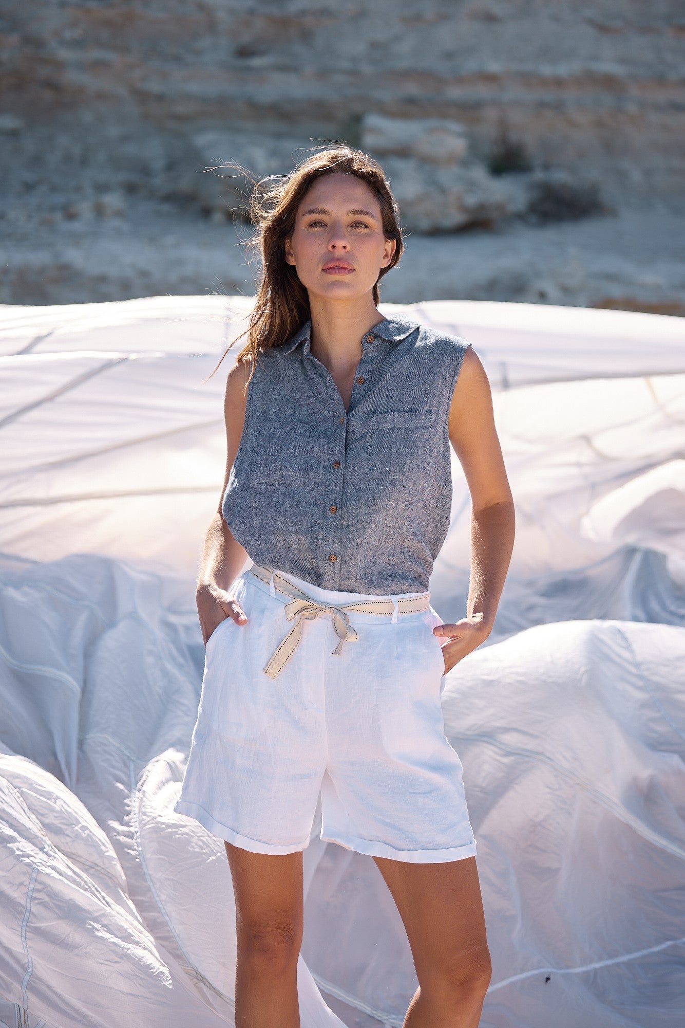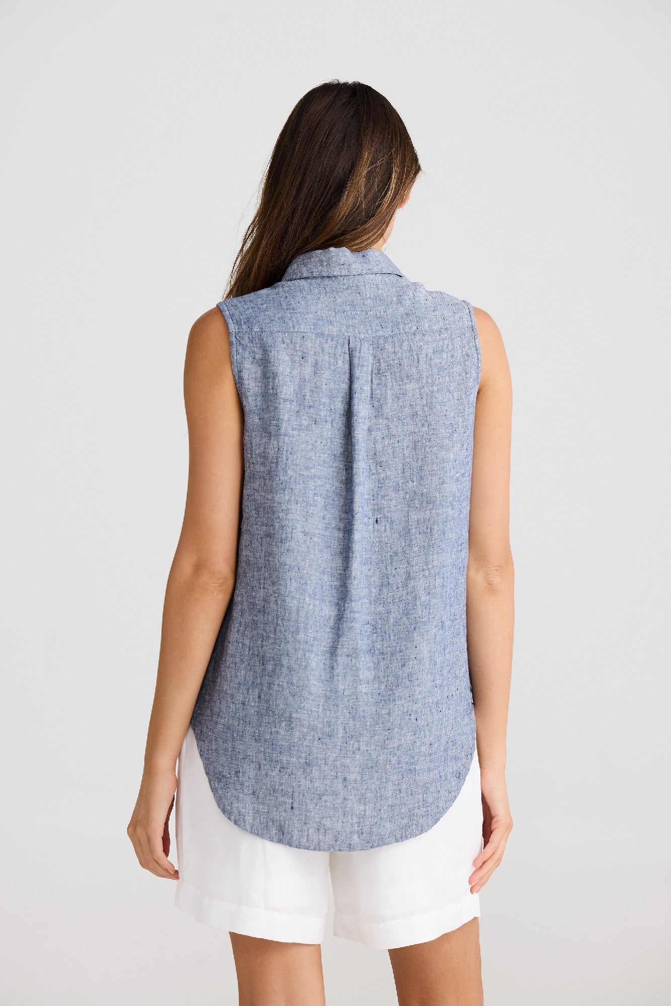 The Shanty Top Bazzar – Navy Fleck is an effortlessly chic linen blend top that combines comfort, texture, and timeless coastal style – perfect for relaxed yet refined everyday dressing.