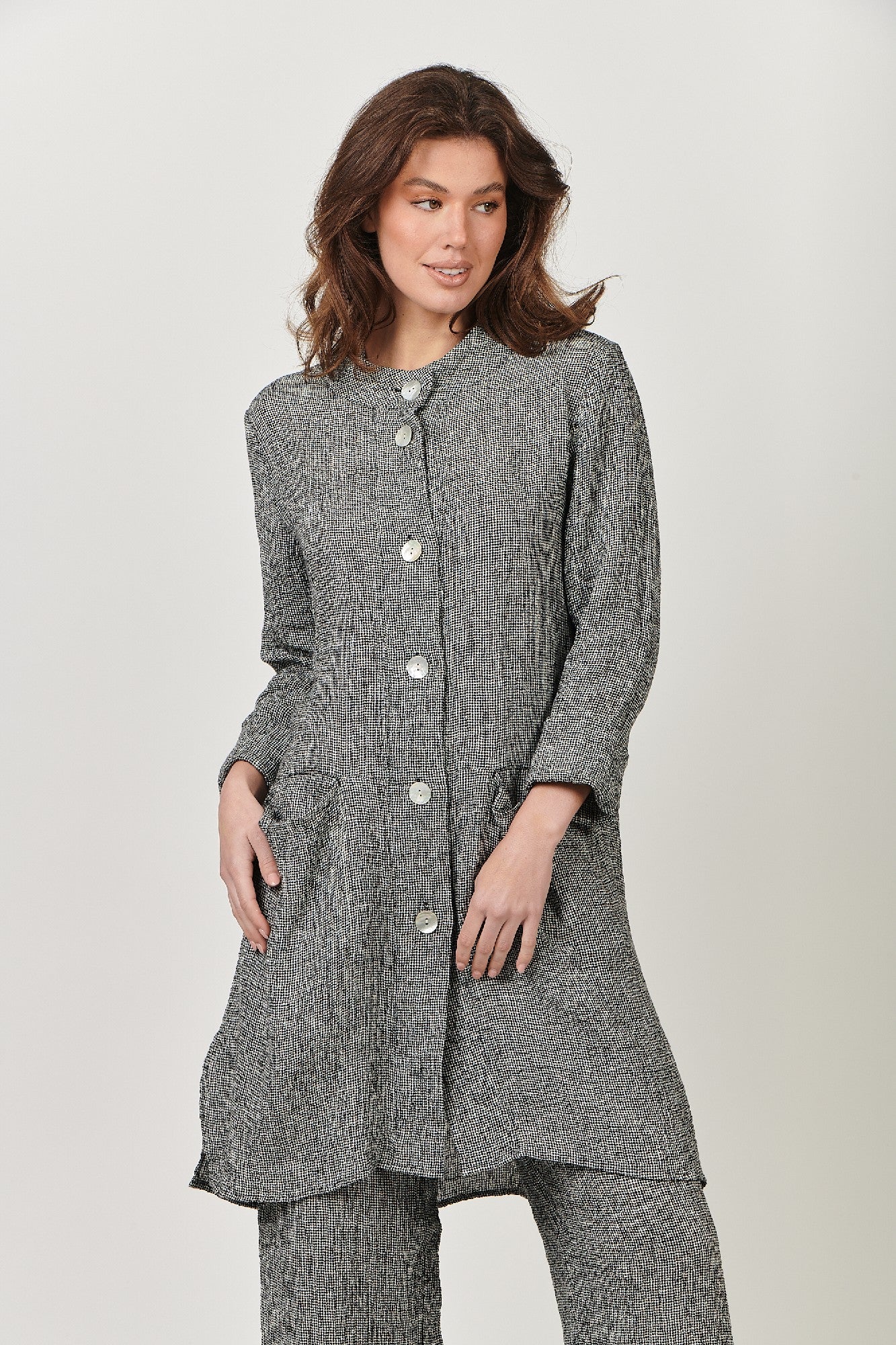 Effortlessly refined, the Naturals Jacket Puppytooth 403 is a timeless layering piece designed to bring structure and style to your everyday wardrobe. Crafted from a soft linen blend with a subtle puppytooth check, this lightweight jacket combines comfort, texture, and sophistication. Available online from Pink Poppies Living Creatively, your Stanthorpe boutique for Australian-designed fashion.