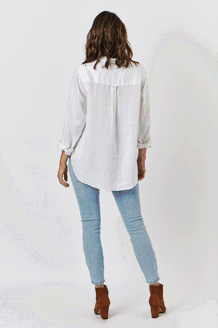 A true wardrobe essential, the Enveloppe Shirt – White offers timeless style with a relaxed, effortless finish. Crafted from buttery soft 100% linen, this oversized boyfriend-style shirt is as versatile as it is breathable. The crisp white tone adds instant polish to any outfit, making it a year-round go-to for layering, lounging, or elevating your everyday look.