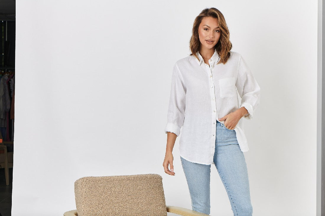 A true wardrobe essential, the Enveloppe Shirt – White offers timeless style with a relaxed, effortless finish. Crafted from buttery soft 100% linen, this oversized boyfriend-style shirt is as versatile as it is breathable. The crisp white tone adds instant polish to any outfit, making it a year-round go-to for layering, lounging, or elevating your everyday look.