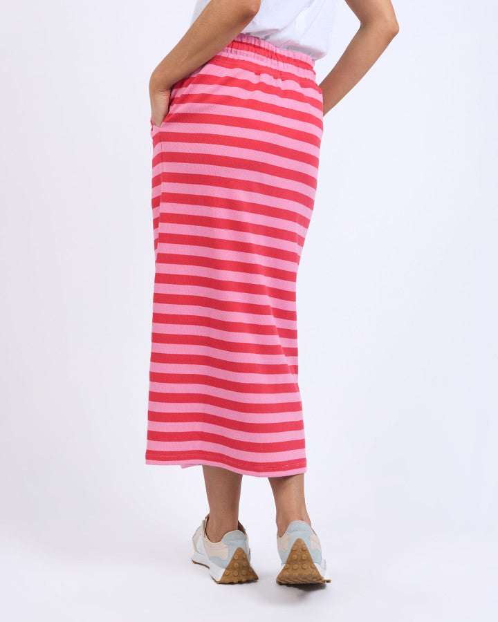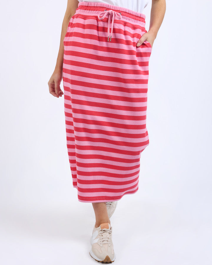 Bright, fun, and effortlessly comfortable, the Elm Sunset Stripe Skirt is perfect for travel, festive occasions, and everyday wear. Shop now at Pink Poppies to add this vibrant staple to your wardrobe!