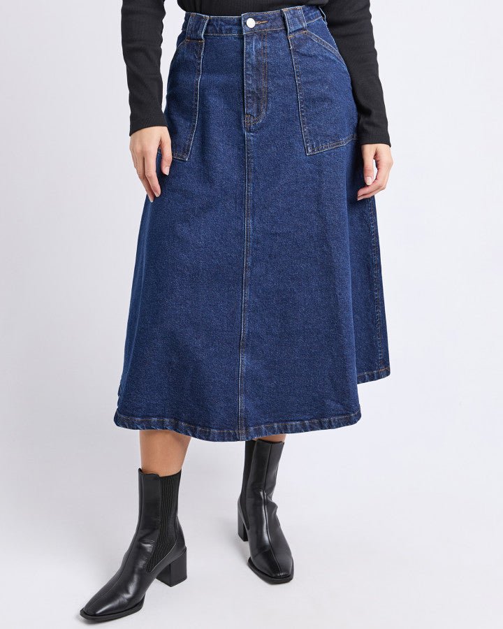 Lou’s Suggestion: This is exactly the sort of skirt Lou loves wearing in Stanthorpe — practical, flattering, and easy to style. She especially loves it paired with the Foxwood Crew Effortless – Rose Pink, which lifts the indigo beautifully and creates a fresh, feminine everyday look.